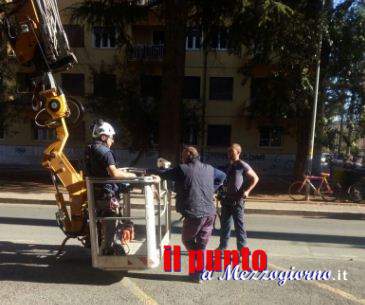 10 Aprile 2017Cassino – Giardinieri volanti quelli che questa mattina stanno mettendo in sicurezza il grosso alto fusto in piazza Toti a Cassino.