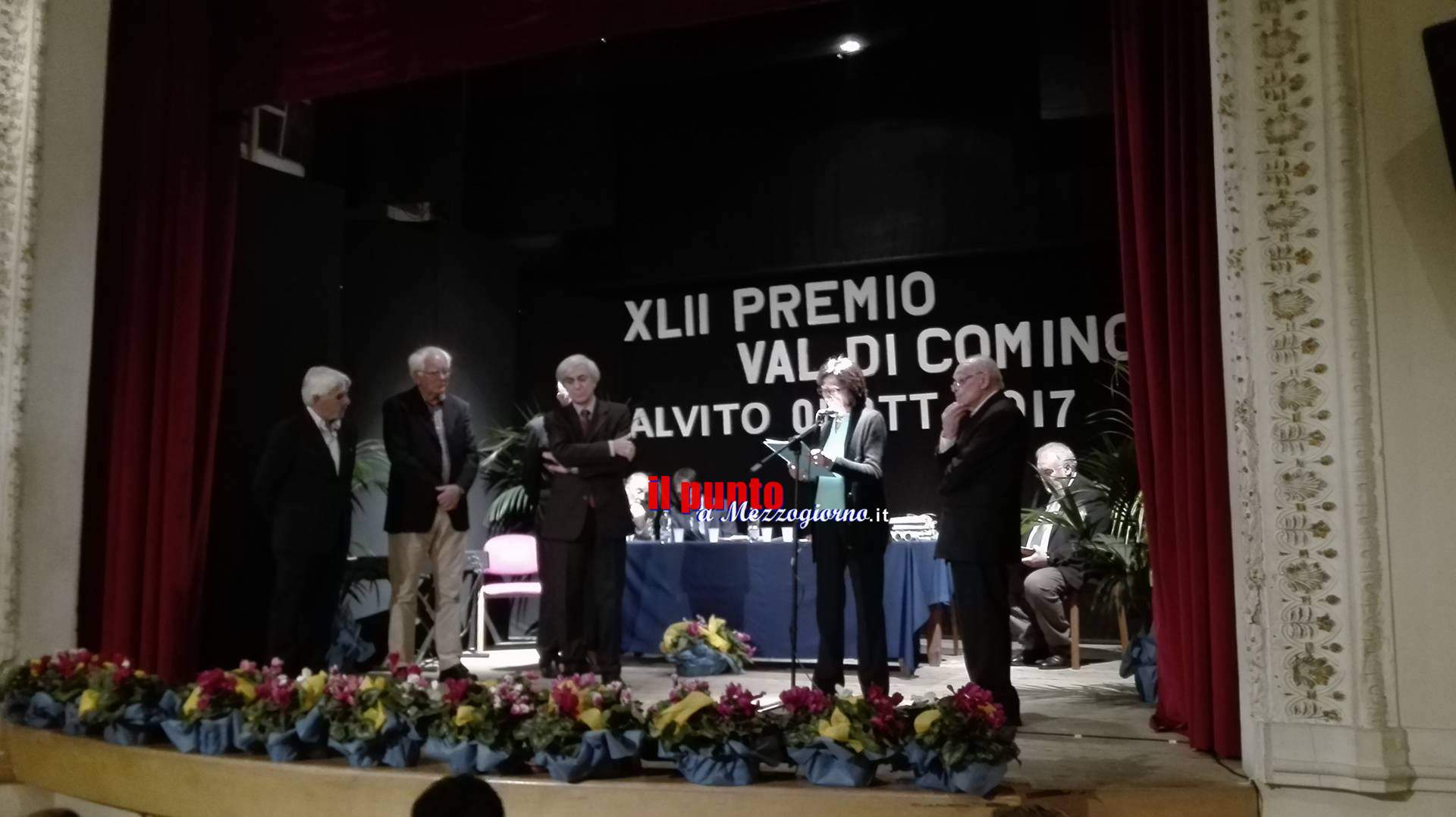 2 Ottobre 2017Alvito – Un successo che si rinnova da quarantadue anni, dal 1976 – anno della sua fondazione – il Premio Letterario “Val di Comino”, senza mai saltare una edizione, fa di Alvito la capitale della poesia e della letteratura italiana. “Il prestigio di un riconoscimento letterario – sottolinea il patron Gerardo Vacana – è tutto nella scelta dei premiati. Sono passati da qui i più grandi scrittori italiani, e tutti in qualche modo sono rimasti legati al territorio ed all’iniziative del Centro Studi Letterari che organizza l’evento”. E la conferma più autentica del prestigio dell’iniziativa la si trova sfogliando l’albo d’oro della manifestazione. Mario Luzi, Andrea Zanzotto, Edoardo Sanguineti, Tonino Guerra, Alessandro Parronchi, Maurizio Cucchi, Vivian Lamarque, Maria Luisa Spaziani, Giovanni Raboni, Luciano Erba, Jolanda Insana, Claudio Magris, Luigi Baldacci, Lorenzo Mondo, Evgenij Solonovich, Sergio Givone, Giuseppe Bonaviri, Alberto Bevilacqua, Giancarlo Giannini, Giorgio Albertazzi, Enzo Decaro, Enrico Lo Verso, Vincent Spano, Giuliana De Sio, Jacqueline Risset, Lina Sastri, Angela Luce etc. Domenica 1 ottobre, nel Teatro Comunale di Alvito, si è segnato un nuovo successo. Una sala gremita, alla presenza delle massime autorità ha applaudito i vincitori dell’edizione 2017: per la Poesia Melo Freni, con il volume Oltre il labirinto / Poesie 1965 – 2015 (Città del Sole, Reggio Calabria); per la Traduzione Poetica Giuseppe Santoliquido (Per la versione francese di Solstizio di De Libero); per la Saggistica Letteraria Raffaele Pellecchia (Per l’insieme della sua produzione); per la Saggistica Storica Angelo D’Orsi, con il testo 1917. L’anno della Rivoluzione (Laterza, Bari); per il Giornalismo Luciano Fontana Direttore de Il Corriere della Sera, Stefano De Angelis de Il Messaggero, Frosinone. Menzione speciale per la Sezione Teatro a Astrid Pinero Herrera. La giuria del “Val di Comino”, Presieduta da Giovanna Ioli, annovera Elio Gioanola e Gerardo Vacana. Il Premio “Val di Comino” dopo il recital poetico affidato a Dionisio Paglia, ha omaggiato i presenti con un concerto d’onore di Maristella Mariani – soprano, Nicola Fiorillo – violino e Michele D’Agostino – pianoforte.