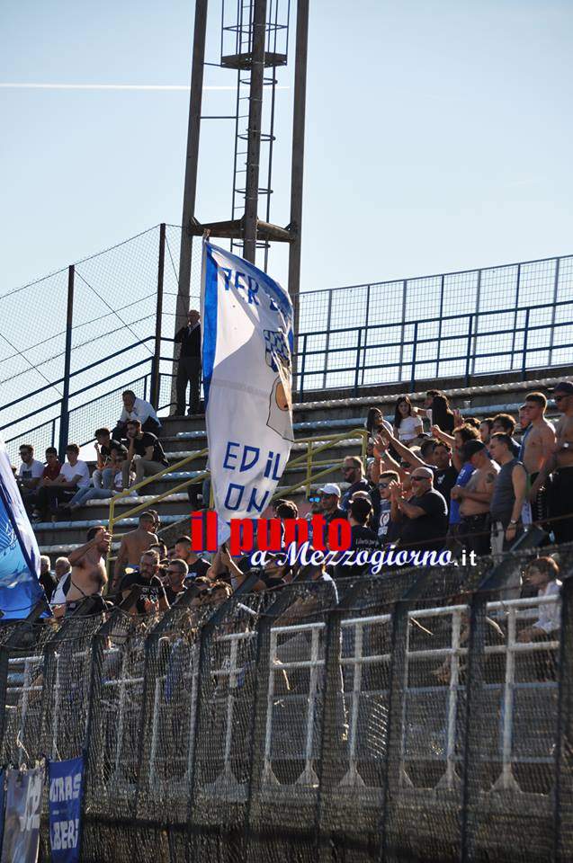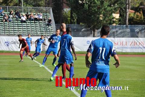 La partita vede, tuttavia, fin da subito la supremazia degli ospiti che mettono in difficoltà il Cassino in più occasioni. Gli azzurri solo a sprazzi riescono a reagire. L’Albalonga, infatti, raddoppia al 18′, quando un destro radente di Corsetti fa secco Della Pietra dopo una cavalcata di 25 metri. Ancora qualche reazione del Cassino, ma sempre vistosamente in affanno contro l’Albalonga padrone del campo, fino al 28’ quando un rigore concesso dal direttore di gara, il signor Arena di Torre del Greco, per fallo su Darboe, potrebbe consentire ai padroni di casa di riaprire il match. Giglio lo sbaglia clamorosamente. Bisognerà arrivare al 41′ per ridurre lo svantaggio degli azzurri e sperare ancora, quando Ricamato con un tiro dai 20 metri spiazza Frasca. Tutto inutile, gli ospiti tengono bene il campo imponendo la loro ai padroni di casa la loro supremazia. I minuti scorrono con qualche timida reazione, ma al triplice fischio il risultato finale non cambia. Albalonga batte Cassino 2 a 1.