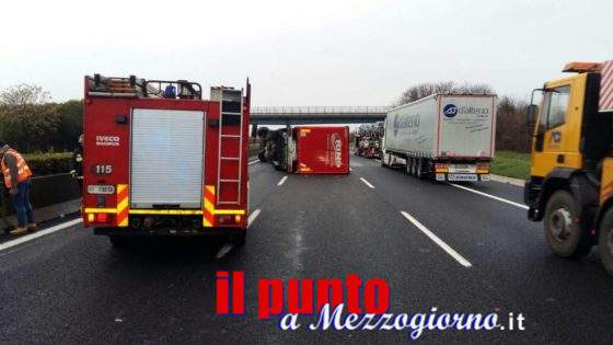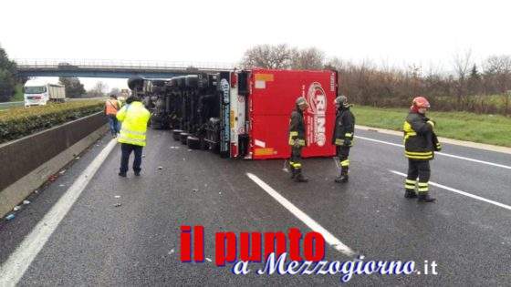 Camion ribaltato sull’A1 tra i caselli di Pontecorvo e Ceprano, disagi al traffico