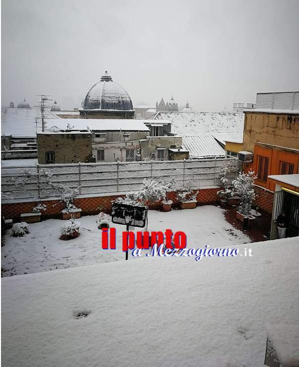 NAPOLI – Il “Grande freddo” si sta spostando verso il sud della Penisola. Stamattina è toccato a Napoli ad ammantarsi di bianco. Una coltre di neve ha ricoperto tetti, parchi e giardini, strade, il lungomare e i punti più suggestivi.