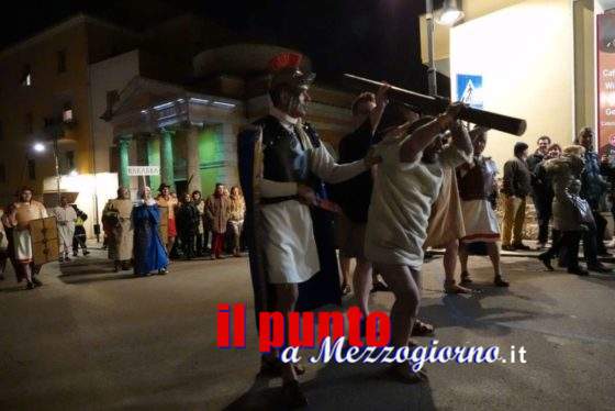 FROSINONE – “Una folla composta ed emozionata ha riempito, a partire dalle 20 di domenica sera, piazza Vi dicembre, la prima delle stazioni della quarta edizione della Passio Christi 2018”.