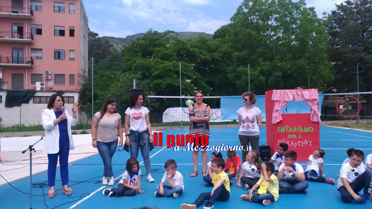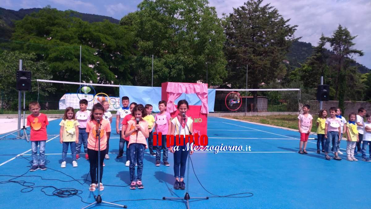 1 Giugno 2018CASSINO – Il gran caldo non ferma la ‘Passione’ di bimbi e maestre che nel cortile assolato della scuola elementare hanno portato in scena lo spettacolo di fine anno. Vincono i bambini, i 35 alunni delle classi prime del plesso San Silvestro di Cassino si sono definitivamente lasciati alle spalle il debutto alle elementari con uno spettacolo in cui si sono inventati mastri burattinai per insegnare ai più grandi il significato delle cose più semplici. A come amicizia, B come bacio, C come carezza, D come Dono, E è l’emozione di un lavoro con passione. Quella che ha vinto nello spettacolo della 1 A e della 1 B, coordinato dalle insegnanti Annamaria Sidonio, Olga Mauro, Valentina Cunto, Barbara Gradini, Annamaria Verrecchia, Isabella Delicato, Rossana Evangelista che sono riuscite a superare i consueti ostacoli dettati da un sistema scolastico lacunoso che avrebbe bisogno di strutture più accoglienti e adeguate agli sforzi, massimi, profusi tra le aule durante l’anno da insegnanti, tirocinanti e bambini.
