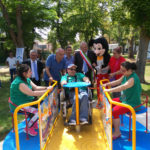 Poi tutti al taglio del nastro, per l’inaugurazione dei giochi con immancabile taglio del nastro del sindaco D’Alessandro Via ooi al primo giro sull’altalena e sulla giostra, con le carrozzine agevolmente posizionate sulle pedane. A spingere… Presidente, Sindaco, Vicepresidente, Direttore e operatori consortili, tra i sorrisi divertiti dei ragazzi speciali.