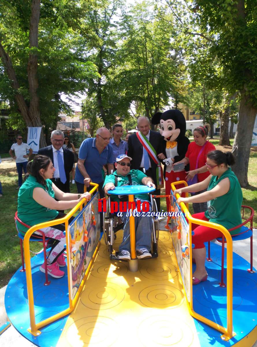 5 Luglio 2018CASSINO – Una festa, gioia sincera e spontanea, e non può essere altrimenti quando si ha a che fare con il sorriso di persone meno fortunate: nel parco Baden Powell di Cassino sono stati inaugurati la Giostra girasole e l’Altalena che permetteranno ai bambini e ragazzi diversamente abili di giocare insieme agli altri ragazzi che frequentano l’area verde.