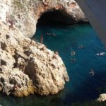 La Grotta Verde di Castro è uno spettacolo della natura. La si visita facilmente. Nel primo tratto l’acqua è bassa e addentrandosi, dopo una prima camera, si ha accesso ad una seconda illuminata da un secondo ingresso sottomarino da cui la cui la luce affiora dal basso e si può anche uscire. Non è semplice descrivere i colori all’interno che cambiano a seconda dei movimenti, anche minimi, dell’acqua: bisogna vederli.