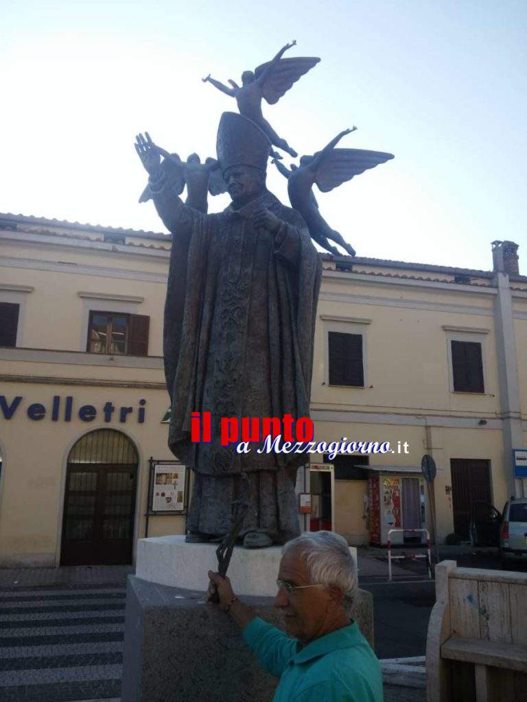 Vandalizzata la statua di Papa Giovanni Paolo II a Velletri, edicolante ritrova il crocefisso sottratto