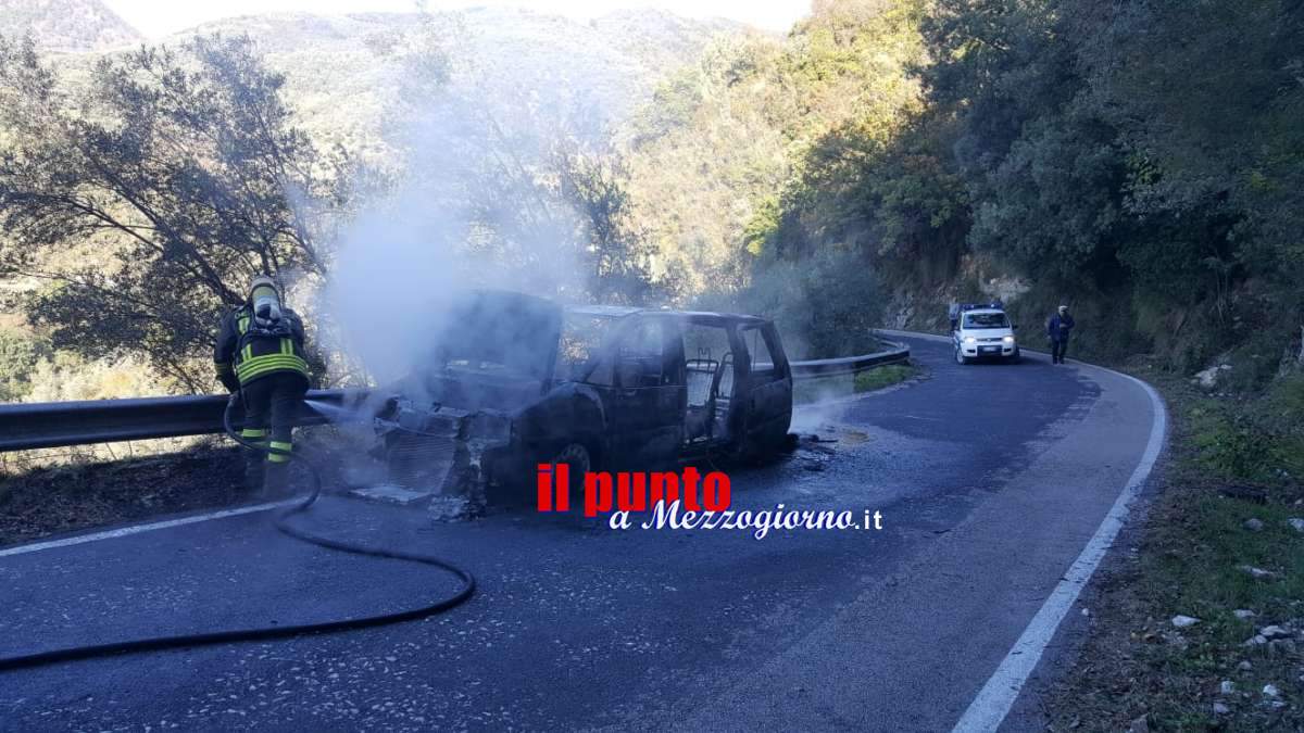 Macchina in fiamme sulla strada per Vallerotonda, salvo anziano alla guida