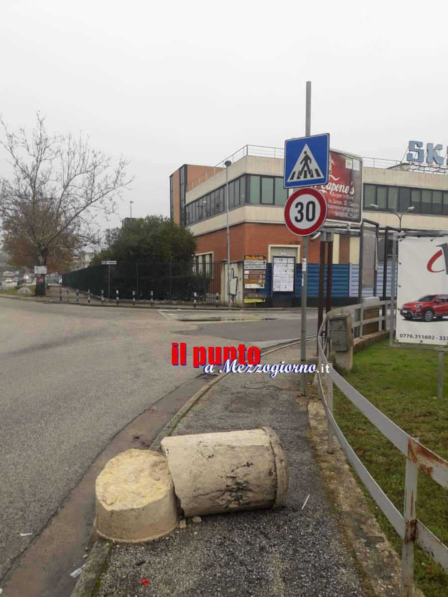Il massiccio cippo in pietra, all’apparenza indistruttibile, era posizionato sul perimetro della Rotatoria che sta sulla via Casilina sud a Cassino nei pressi dello stabilimento Skf, lungo l’antico percorso stradale “disegnato” e realizzato nel 1700 dai Borbone per far arrivare al porto di Napoli le merci prodotte negli opifici del sorano.