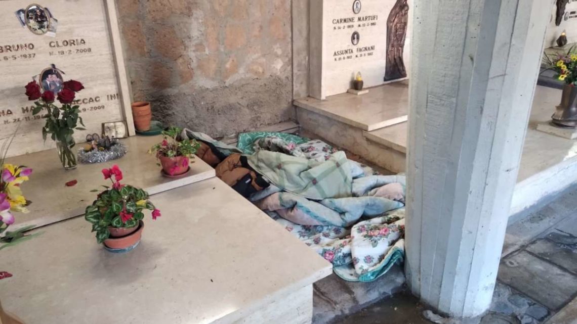 6 Gennaio 2019VELLETRI – La necessità di avere qualcosa sulla testa gli ha fatto vincere la paura dei morti e, per questo, un disadattato di Velletri, ha trovato ricovero nel cimitero comunale, allestendo un letto di fortuna tra due tombe.
