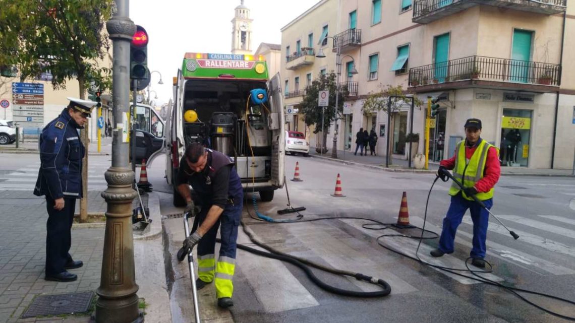 La pozzanghera di carburante che rendeva scivoloso l’asfalto su strisce pedonali e scivoli in prossimitá dell’incrocio con via Marconi è stata segnalata dai cittadini e l’intervento della municipale è servito per consentire la messa in sicurezza dell’area e l’inizio delle indagini attraverso la visione delle immagini delle telecamere.