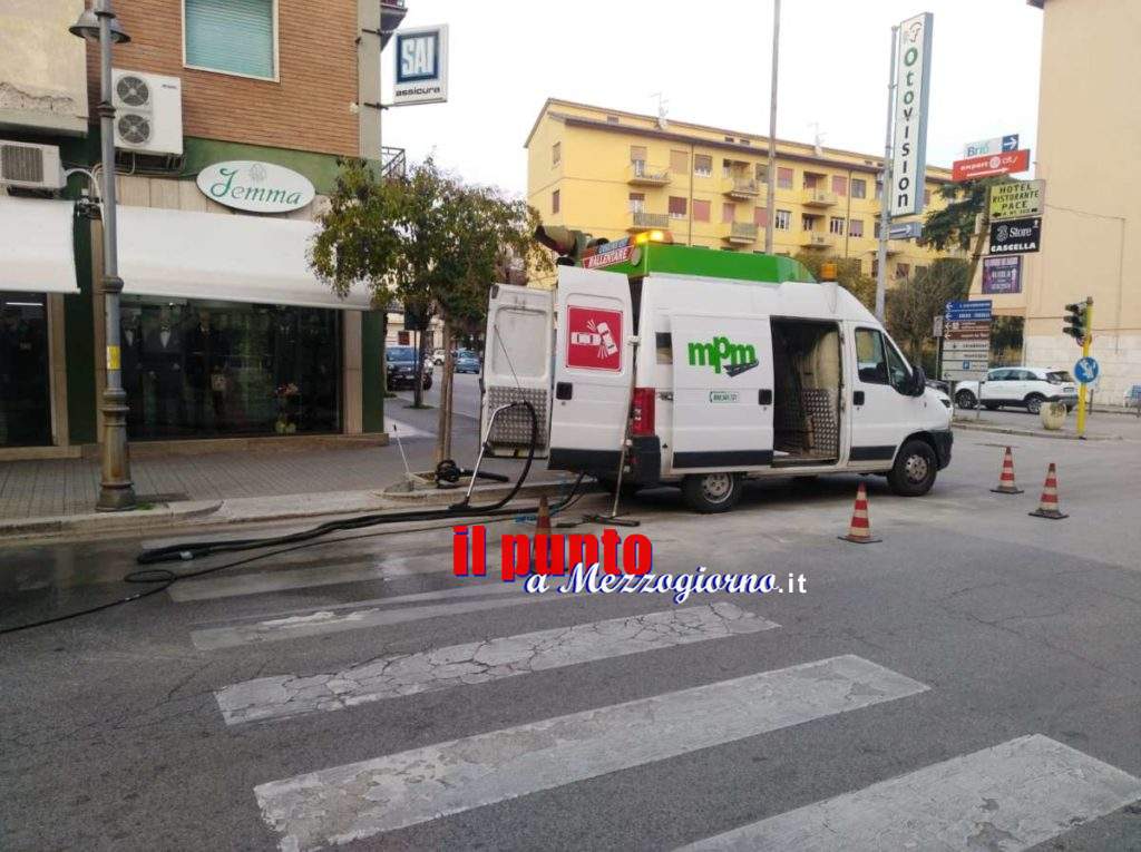 Cassino, grossa perdita di gasolio in Corso della Repubblica. Municipale a caccia del responsabile
