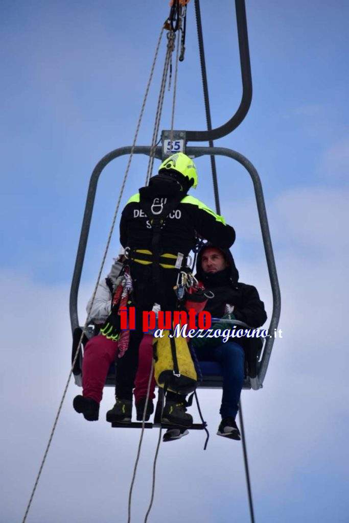 Durante l’esercitazione è stato simulato il recupero di persone bloccate sulla seggiovia, la ricerca di dispersi sibin fronte di valanga ed il recupero di un infortunato con l’ausilio dell’elicottero.