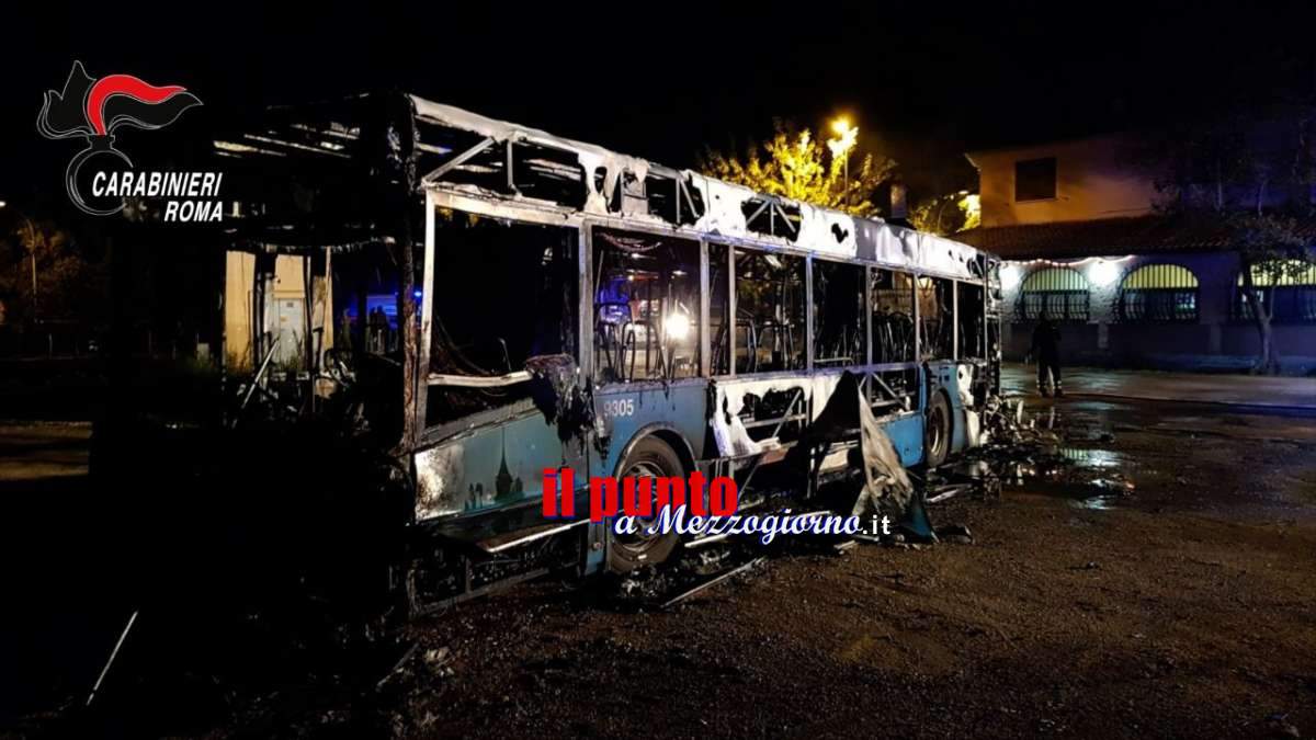 Bus Cotral distrutto da fiamme a Fonte Nuova, illesi i 20 passeggeri