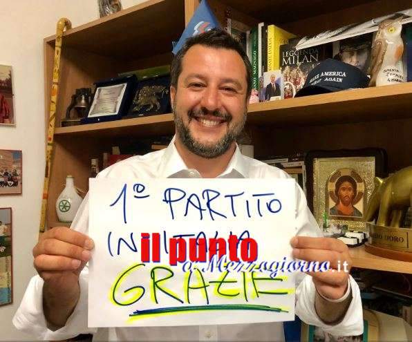 27 Maggio 2019DALL’ITALIA – La Lega vola al 34,3%, il Pd diventa il secondo partito con il 22,7 e il Movimento 5 Stelle crolla al 17,07%. Le elezioni Europee hanno confermato ciò che già si ipotizzava e cioè che la Lega di Matteo Salvini viaggia con il vento in poppa. Se dalle urne chiuse ieri sera alle 23 fosse uscito il risultato delle elezioni Politiche, ciò avrebbe significato un cambio di Governo nel Paese con Salvini Primo Ministro a cui sarebbe bastato l’appoggio di Forza Italia e Fratelli d’Italia per fare un Governo senza gli amici/nemici del M5S. Ma quelle di ieri sono consultazioni Europee e lo stravolgente risultato di Salvini può servirgli per “mostrare i muscoli”, ma che nella sostanza delle cose cambia poco o nulla.
