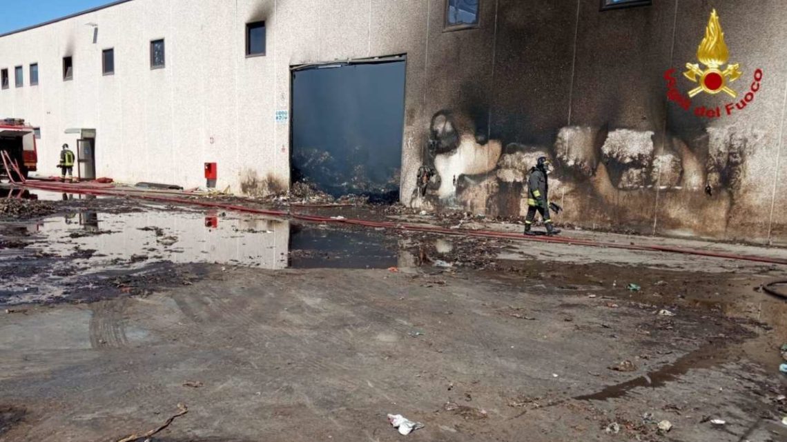 L’intervento si è concluso con lo separazione del materiale incombusto presente all’interno del capannone.