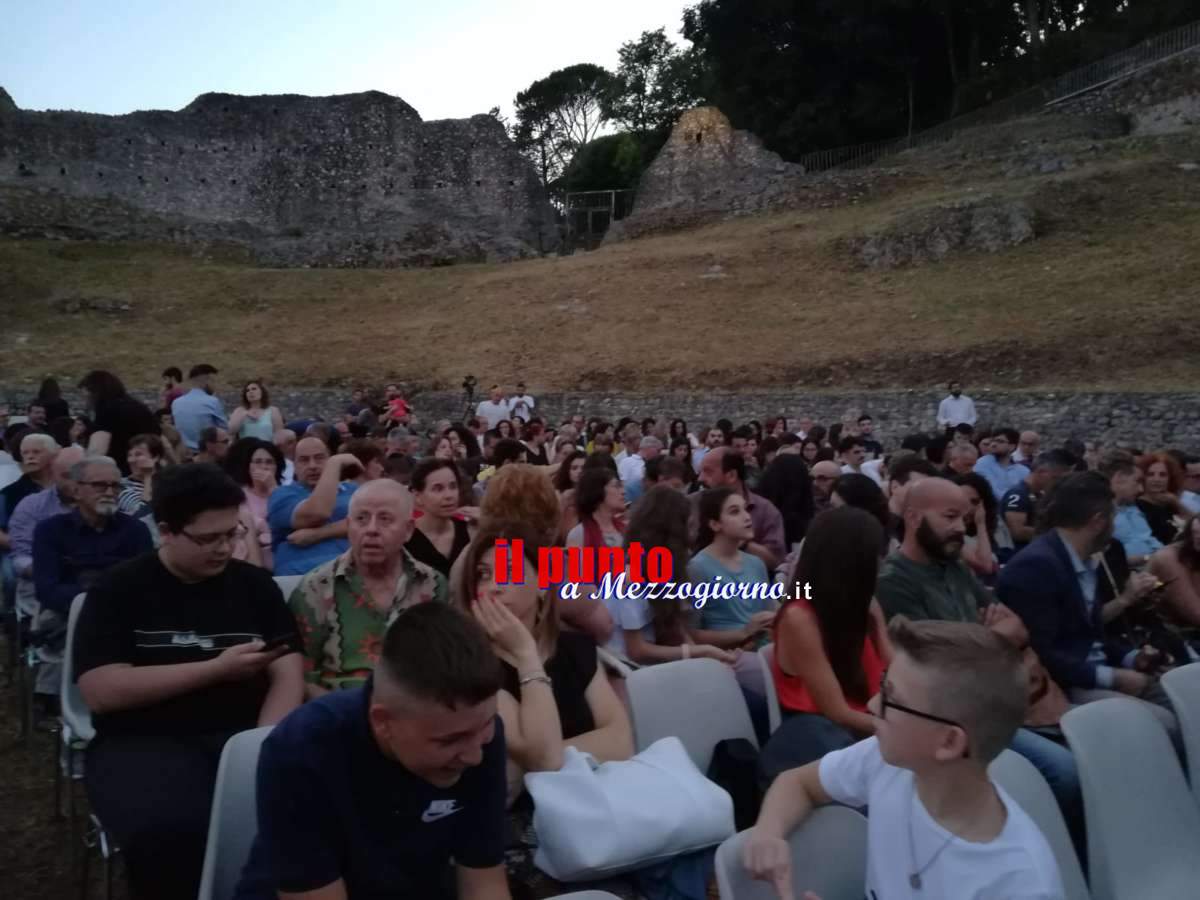 13 Luglio 2019CASSINO – Una serata magica, di grande fascino, nella cornice suggestiva dell’Anfiteatro, nel complesso archeologico di Cassino, quella di ieri sera con il M°Giovanni Allevi. L’attesa è durata venti lunghi anni, ma l’area archeologica dell’Anfiteatro di Cassino ha finalmente riaperto i battenti ai grandi eventi culturali e lo ha fatto in grande stile, con l’entusiasmo e il carisma del pianista famoso nel mondo, Giovanni Allevi, e il suo “Piano solo tour – Summer 2019”.