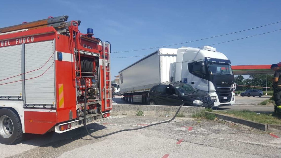 Il grosso automezzo uscendo dalla stazione diservizio ha tamponato un’autovettura con tre giovani a bordo, due ragazze ed un ragazzo, che sono rimasti leggermente feriti.