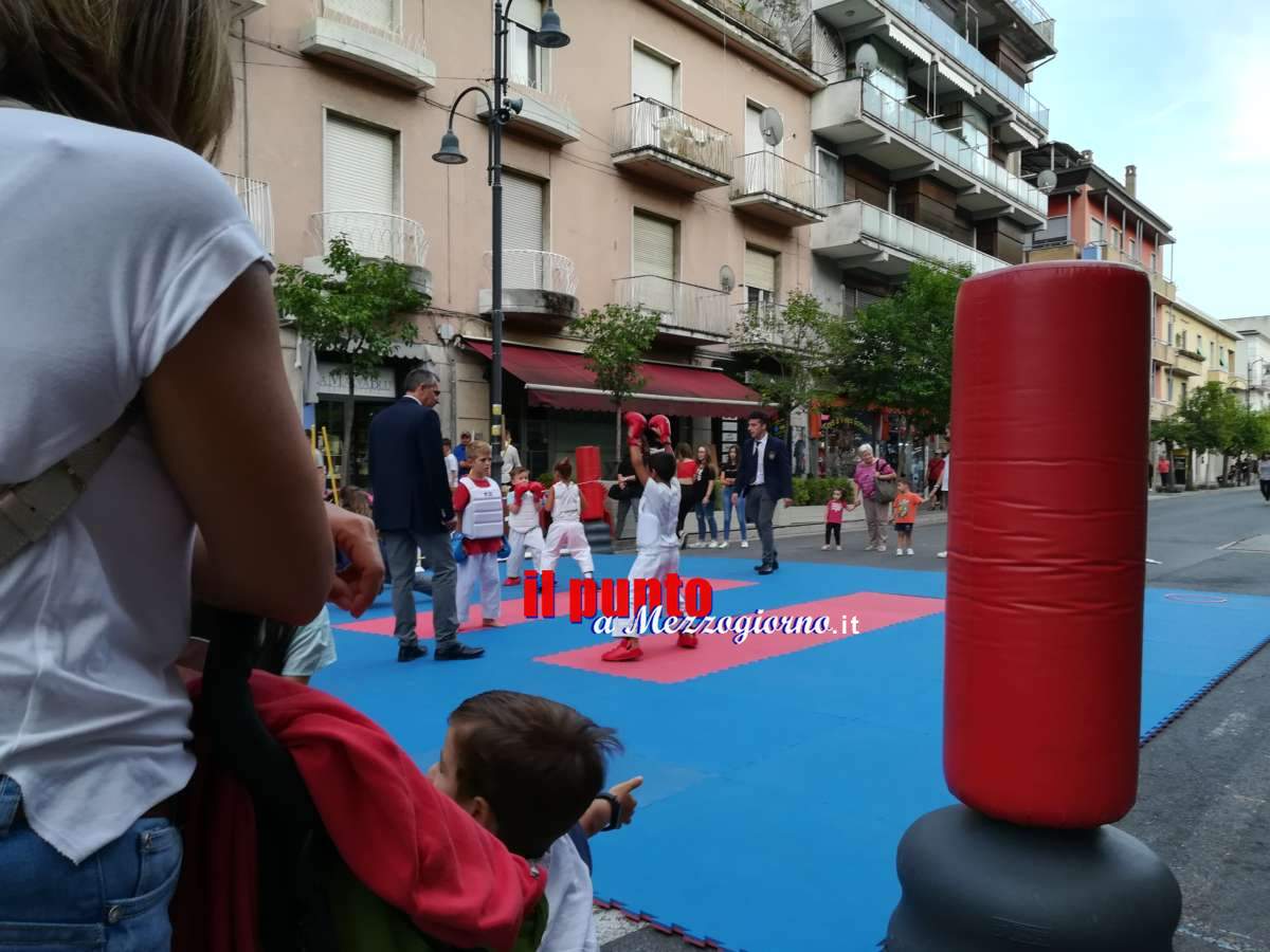 22 Settembre 2019CASSINO – “Ripartiamo dai giovani, dalla gente, dalle Associazioni sportive dilettantistiche, per ricominciare a pensare a quello che deve rappresentare per tutti noi la svolta”, questo lo slogan con cui era stata presentata la “Notte Bianca dello Sport” di Cassino e che ha caratterizzato la kermesse di ieri per le vie e le piazze del centro. Un tripudio di atleti, grandi e piccoli, ha invaso la città fin dal pomeriggio. Tutte le associazioni sportive cittadine si sono presentate all’appuntamento. “La ‘Notte Bianca dello Sport’, alla sua prima edizione, nasce dalla sinergia con le associazioni e i commercianti. L’iniziativa voluta fortemente dall’assessore Tamburrini e dal presidente del Consiglio Di Rollo per valorizzare il lavoro delle Associazioni rappresenta sicuramente la strada giusta da percorrere per il rilancio di Cassino. Oltre quaranta le associazioni sportive dilettantistiche, e non, che hanno risposto all’appello, dal calcio, all’atletica, alla scherma, alla pallavolo, al basket, alle arti marziali, fino a notte inoltrata. Una giornata di sport e di aggregazione che ha visto tanti giovani atleti esibirsi in performance sportive di tutte le discipline per promuovere la cultura e gli ideali dello sport, supportati dai loro insegnanti, ma soprattutto incoraggiati e sostenuti da genitori e nonni.