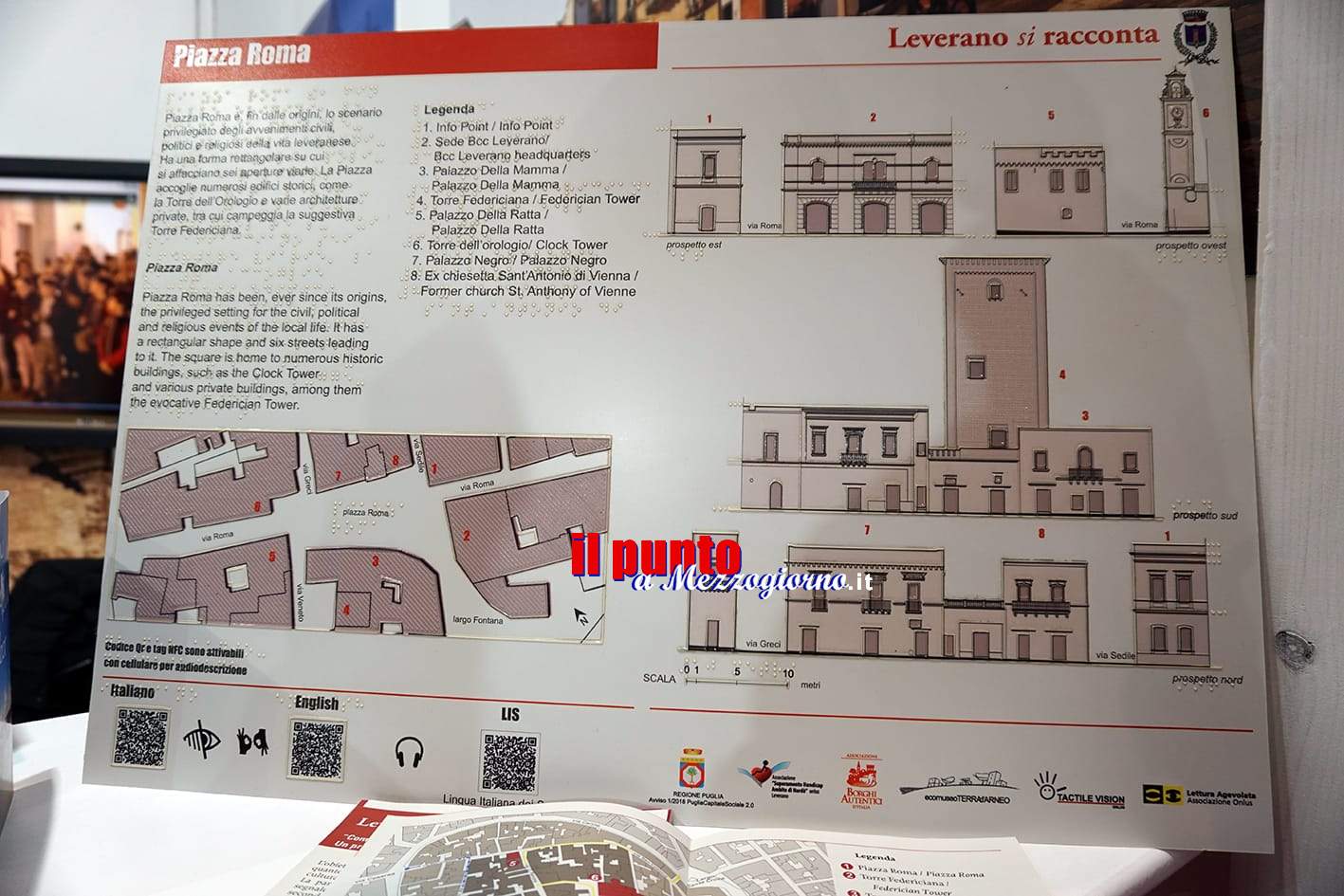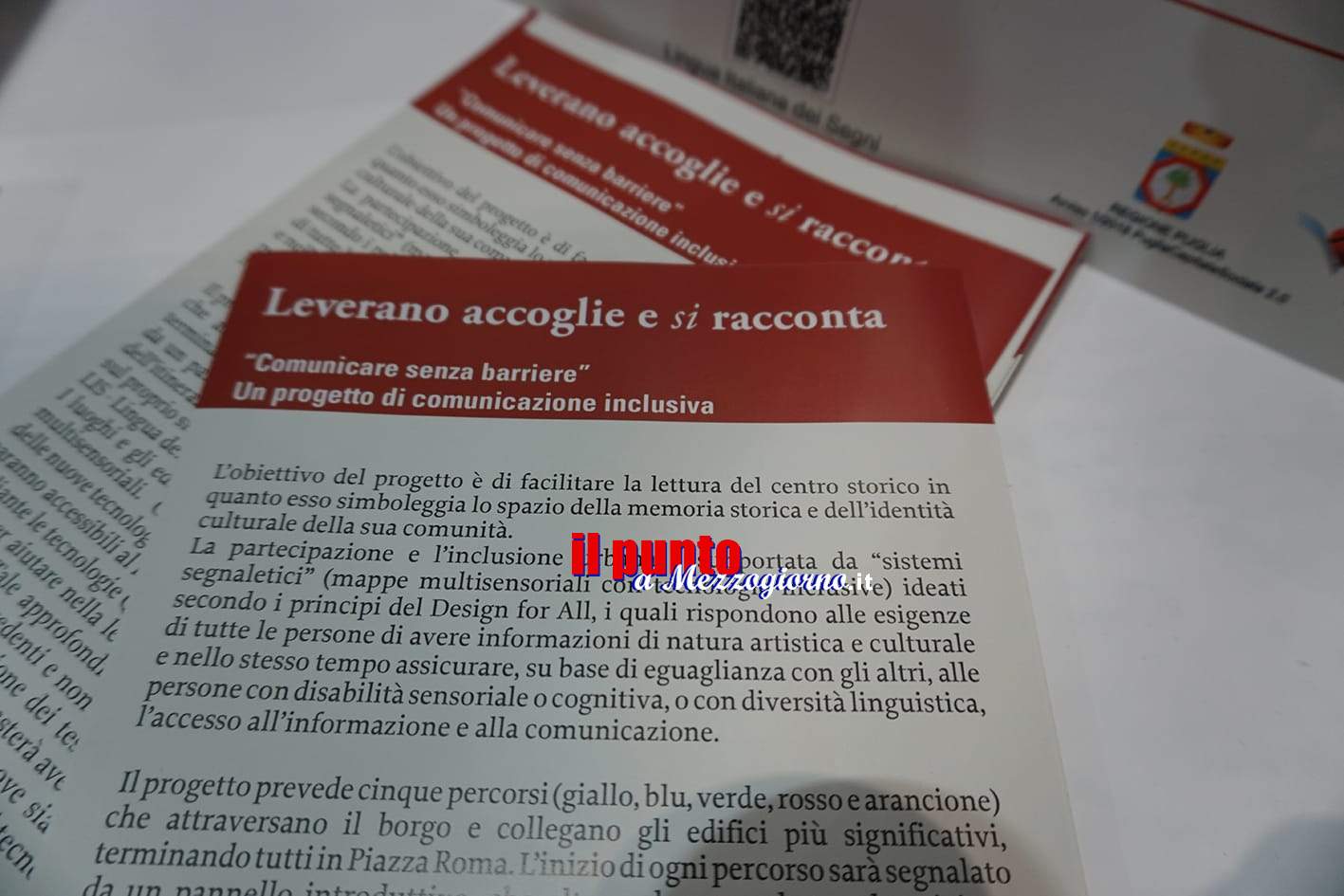 «L’obiettivo del progetto – spiegano dallo staff del sindaco – è di facilitare la lettura del centro storico in quanto esso simboleggia lo spazio della memoria storica e dell’identità culturale della comunità. La partecipazione e l’inclusione urbana è supportata da mappe multisensoriali con tecnologie inclusive ideati rispondendo quindi alle esigenze di tutte le persone di avere informazioni di natura artistica e culturale e nello stesso tempo assicurando alle persone con disabilità sensoriale o cognitiva o con diversità linguistica, su base di eguaglianza con gli altri, l’accesso all’informazione e alla comunicazione». Sono dunque cinque diversi percorsi presentati che attraversano il centro urbano di Leverano unendo gli edifici più significativi. Il progetto prevede che l’inizio di ogni percorso sia segnalato da un pannello introduttivo, che permetterà di attivare sul proprio smartphone informazioni audio-video in italiano, inglese e LIS (Lingua dei Segni Italiana).