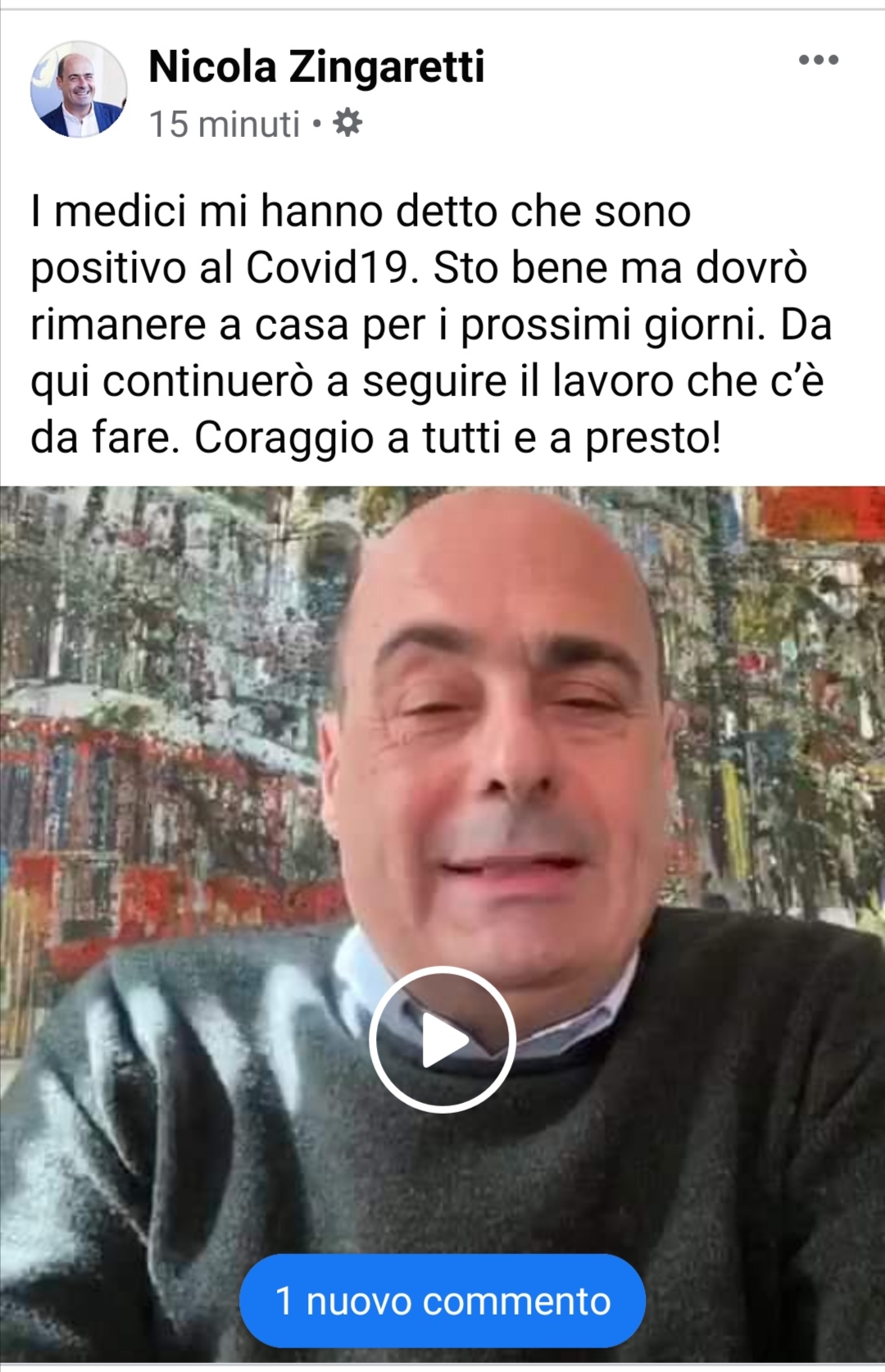 7 Marzo 2020Il governatore del Lazio Nicola Zingaretti positivo al coronavirus.