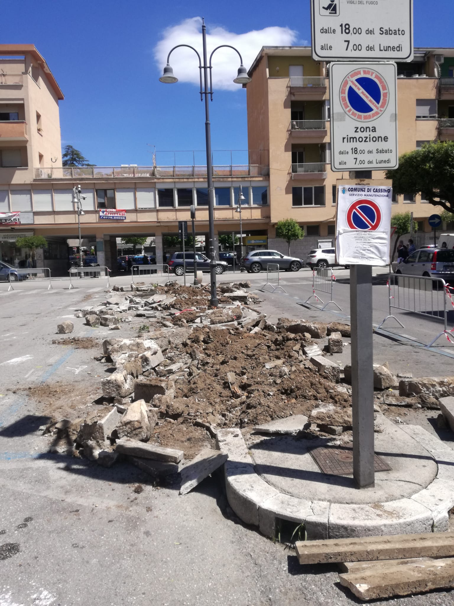 25 Maggio 2020CASSINO – Sono iniziati questa mattina i lavori di smantellamento dell’aiuola spartitraffico in piazza Diamare a seguito di una delibera di Giunta approvata solo qualche settimana fa. Nel comunicato stampa del Comune si fa notare che l’intervento, realizzato con gli operai del Comune, è in coerenza con il progetto generale della futura pedonabilità e della ciclabilità del centro cittadino e risponde ad una esigenza più volte sottolineata e richiamata dal parrocco don Benedetto Minchella, di ampliare il sagrato della chiesa. Esigenza ancor più sentita in questo periodo di svolgimento delle funzioni religiose lì, all’aperto, e in occasione di alcune festività che registrano la partecipazione di un gran numero di fedeli, prosegue la nota dell’Amministrazione.