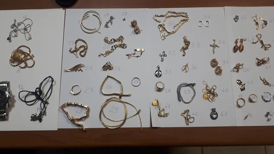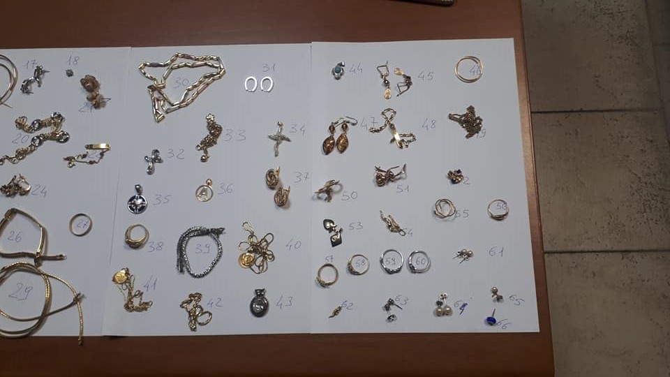 La perquisizione permetteva di rinvenire numerosa refurtiva, consistente principalmente in oggetti d’oro, per un valore di più di ventimila Euro, risultati provenire da tre distinti furti commessi poco prima a Giugliano in Campania (NA) ed a Centurano (CE).