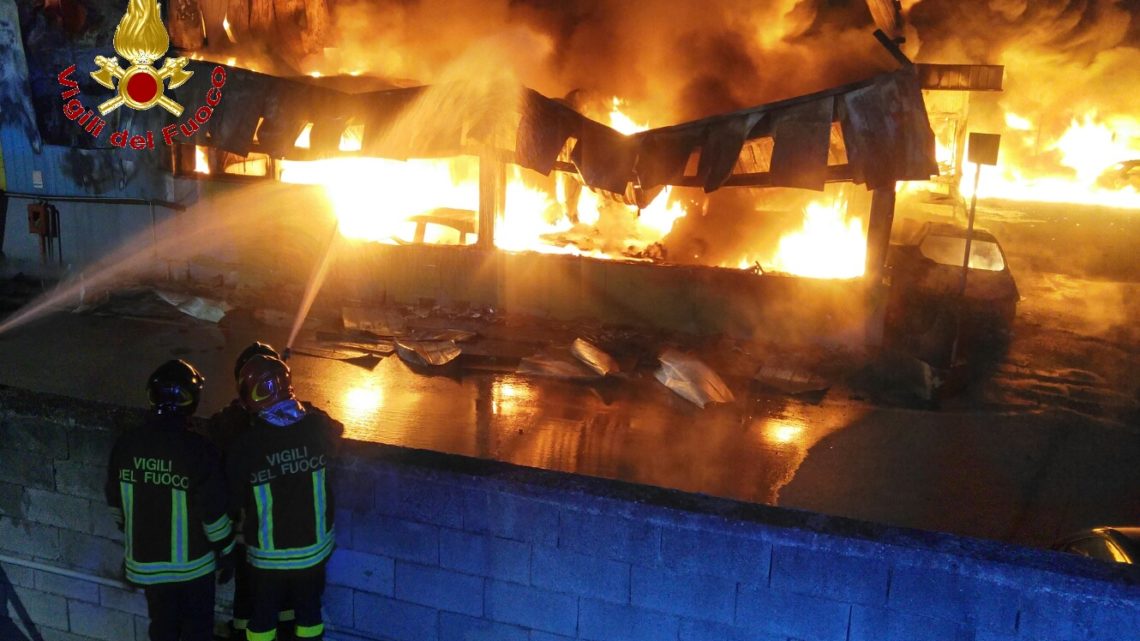 Il tempestivo intervento dei Vigili del Fuoco impegnati per diverse ore di lavoro ha evitato che le fiamme si propagassero alle altre autovetture custodite nel deposito ed ai capannoni adiacenti. Le cause dell’incendio sono ancora in corso di accertamento. Sul posto anche le altre forze dell’ordine per gli adempimenti di loro competenza.