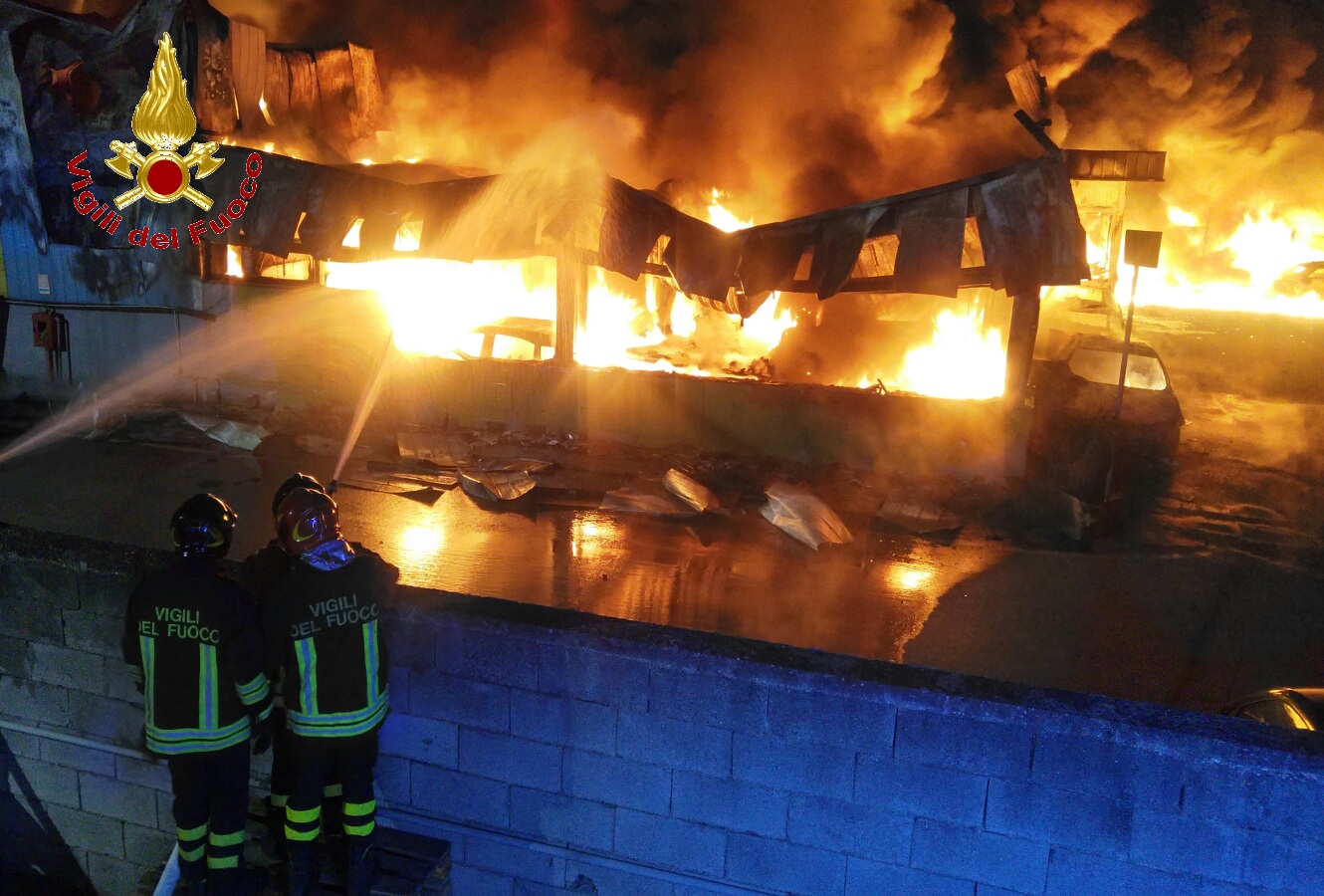 A causa della vastità dell’incendio,situato nel bel mezzo di altre attività industriali,si è reso necessario anche l’intervento di due autobotti , il carro autoprotettori e l’autoscala dalla sede Centrale del Comando.