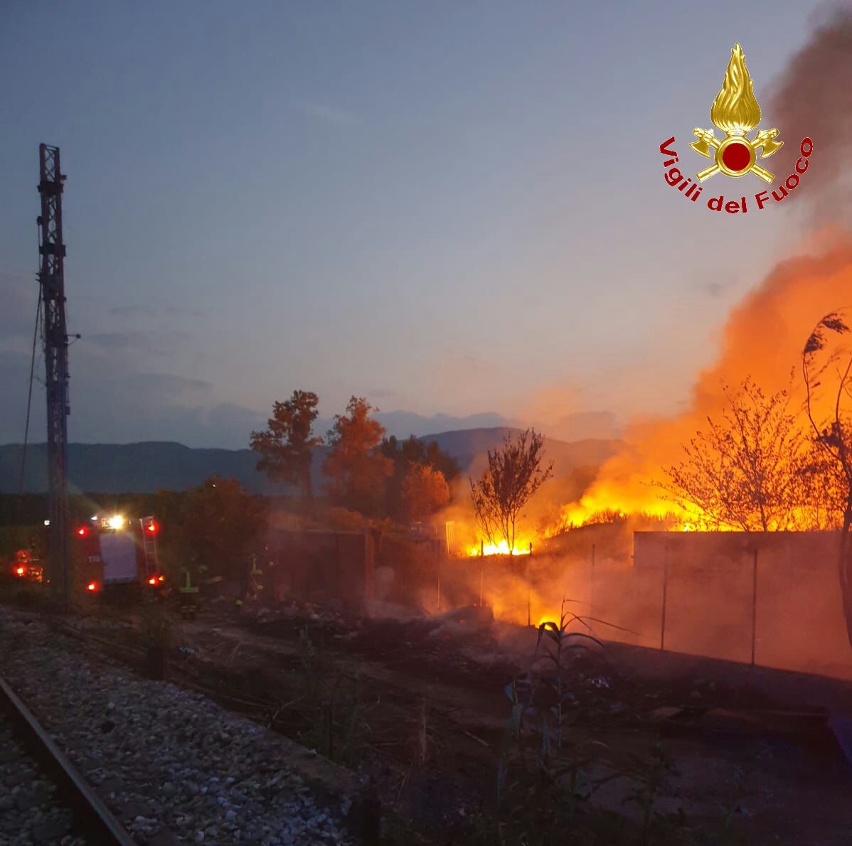 Le operazioni di spegnimento sono ancora in corso da parte dei Vigili del Fuoco.