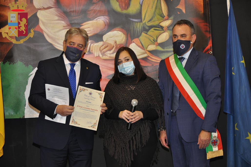 Ieri, in occasione dell’anniversario della strage nazista di Caiazzo il sig. Questore di Roma, Carmine ESPOSITO, ha ricevuto la cittadinanza onoraria della città di Caiazzo, da parte del sindaco, geom. Stefano Giaquinto, alla presenza del Console onorario della Repubblica Federale di Germania a Napoli, per la “passione e la professionalità” con cui ha condotto brillanti indagini risolutive di una efferata strage, (strage di Caiazzo), avvenuta in loco nel 1943, nonché una targa d’onore da parte dell’Associazione Monte Carmignano per l’Europa.