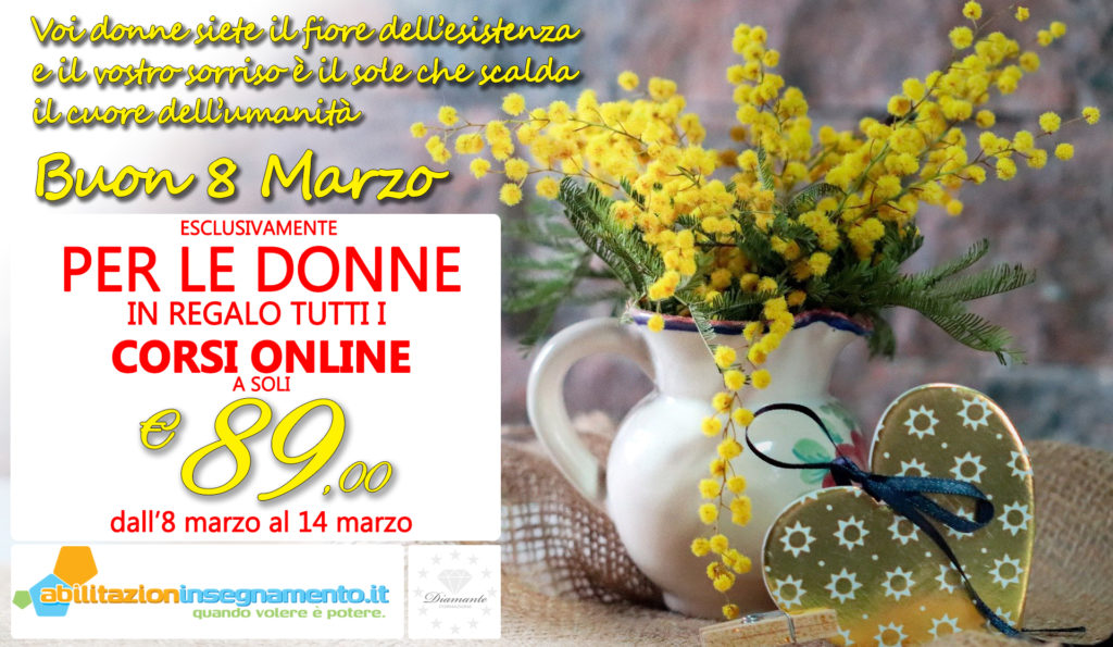 È quindi ora di puntare nuovamente sulla formazione, propria e altrui, e cacciare finalmente quel sogno, a lungo sopito, fuori dal cassetto. Abilitazioneinsegnamento.it affianca i propri iscritti lungo tutto l’iter, chiarendo e semplificando quei processi che possono risultare ostici senza una giusta guida. Il suo sforzo però si sostanzia oggi in un’altra significativa iniziativa, volta ad omaggiare e motivare future docenti e professioniste: in occasione di questa giornata tinta di giallo, e in vista della riapertura delle graduatorie ATA e quelle previste per docenti GPS, propone loro una straordinaria promozione valida dall’8 al 14 marzo 2021: