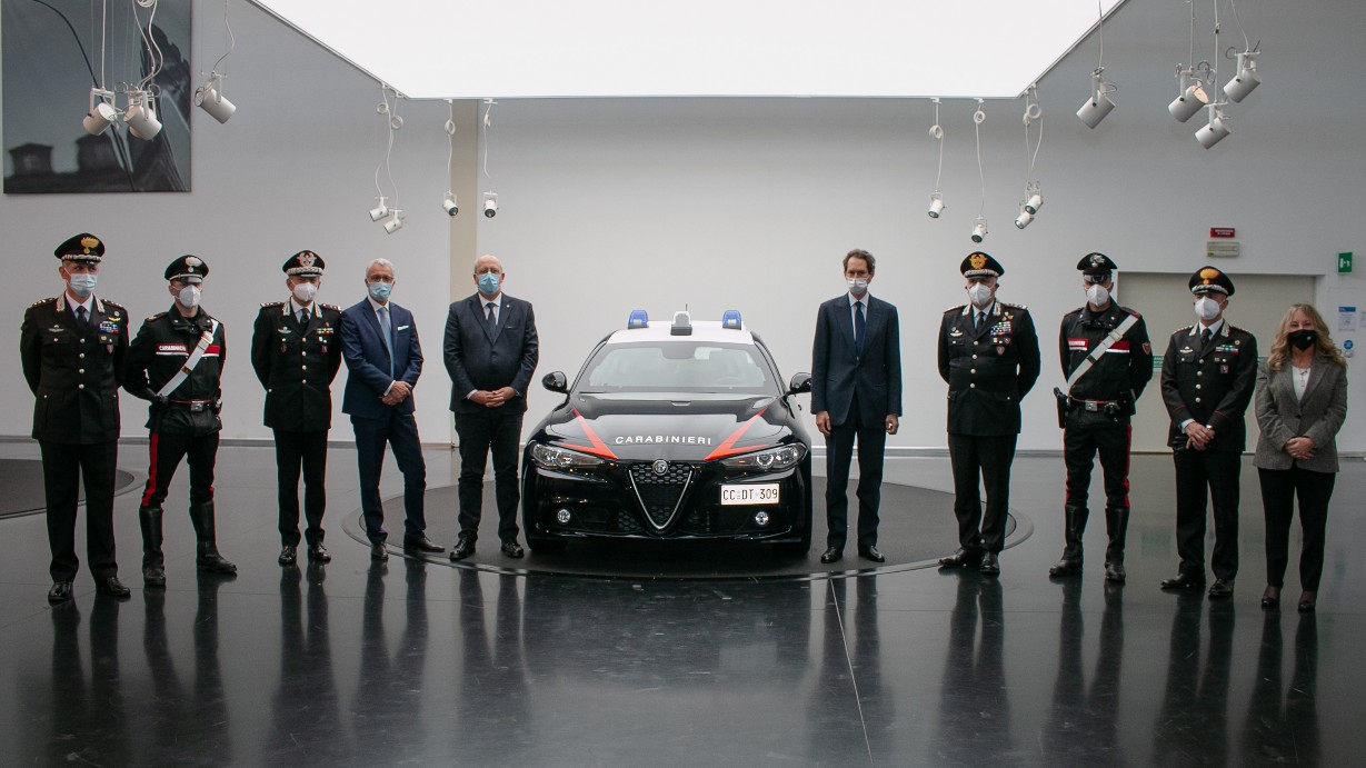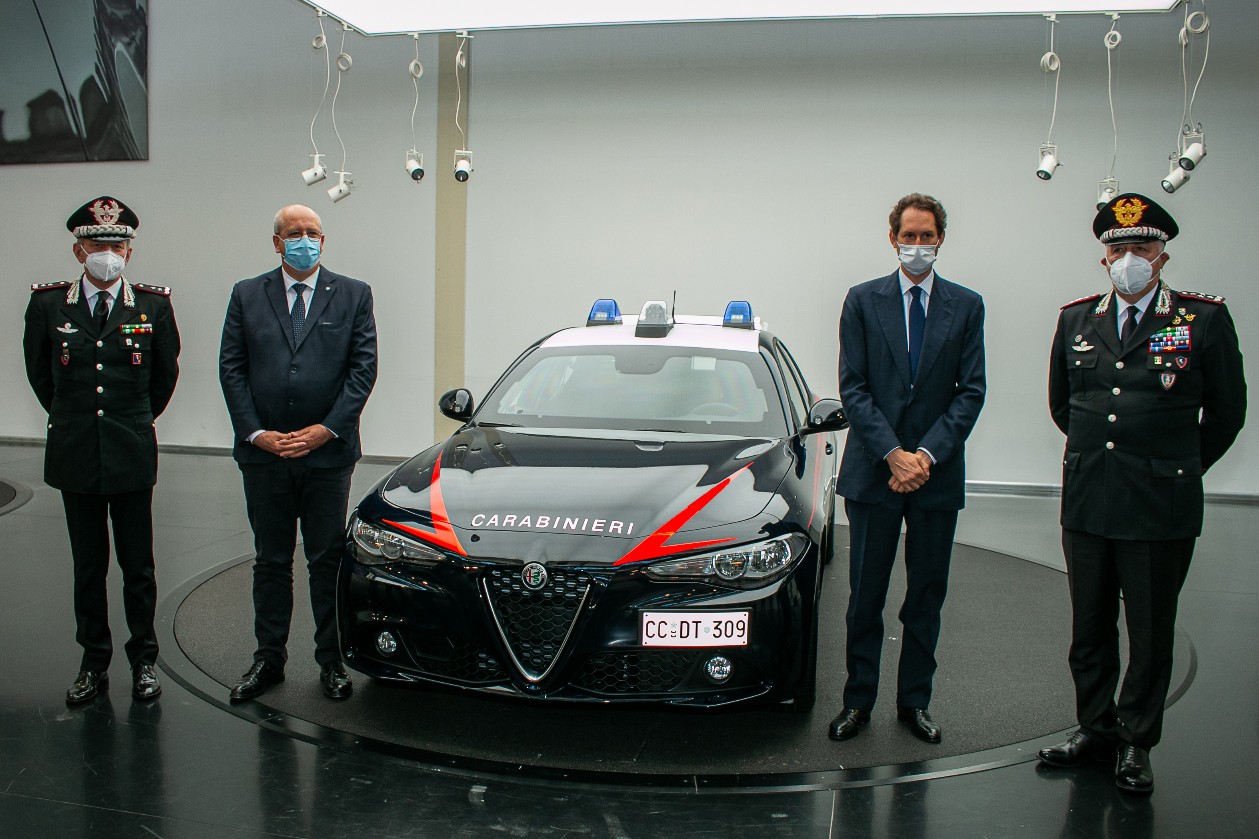 È stata consegnata oggi a Torino presso il Centro Stile, sede del nuovo quartier generale Alfa Romeo, la Giulia Radiomobile 2.0 turbo 200 CV con cambio automatico a 8 rapporti in livrea blu istituzionale, destinata all’impiego da parte del personale delle Tenenze e delle Stazioni dei Carabinieri per il controllo del territorio: è la prima di una flotta di 1.770 esemplari. Alla cerimonia hanno partecipato il Presidente del Gruppo Stellantis N.V., John Elkann, il Comandante generale dell’Arma dei Carabinieri, Teo Luzi, il CEO del Brand Alfa Romeo, Jean-Philippe Imparato, l’Italy Country Manager di Stellantis, Santo Ficili, il Comandate della Regione Carabinieri Piemonte e Valle d’Aosta, Aldo Iacobelli e il Comandante Provinciale Carabinieri di Torino, Francesco Rizzo.