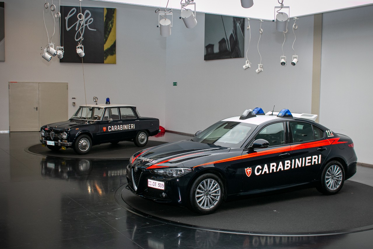Molte di queste vetture sono esposte presso il Museo Alfa Romeo di Arese, nella sezione “Alfa Romeo in Divisa” realizzata in collaborazione con l’Arma e inaugurata il 24 giugno 2020 in occasione del centodecimo compleanno del brand. In esposizione permanente sei selezionatissimi modelli di Alfa Romeo, rappresentativi dei dello storico rapporto con l’Arma, ospitati in un ambiente caratterizzato dal colore rosso, simbolo dell’Alfa Romeo, dal blu delle luci di emergenza delle sirene. Proprio da questa collezione proviene la Giulia del … immortalata oggi accanto alla Giulia attuale appena arruolata.