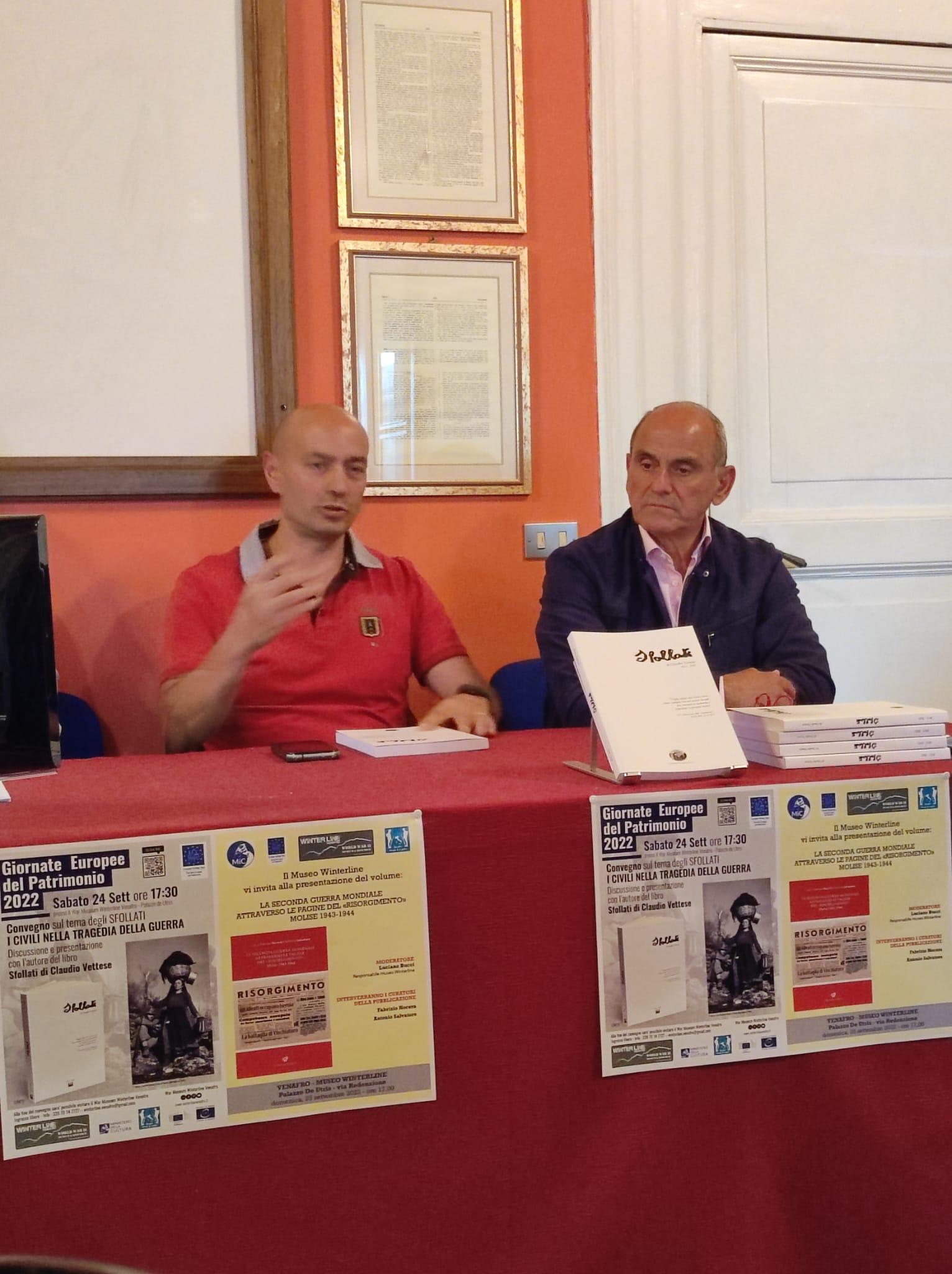 26 Settembre 2022Anche quest’anno, in occasione delle Giornate Europee del Patrimonio, in collaborazione con il Ministero della Cultura, il War Museum Winterline Venafro ha organizzato il 24 e 25 settembre due convegni con presentazione di libri: Il 24 settembre il convegno sul tema del dramma dei civili durante il passaggio del fronte e discussione, alla presenza dell’autore Claudio Vettese, del libro “Sfollati”.