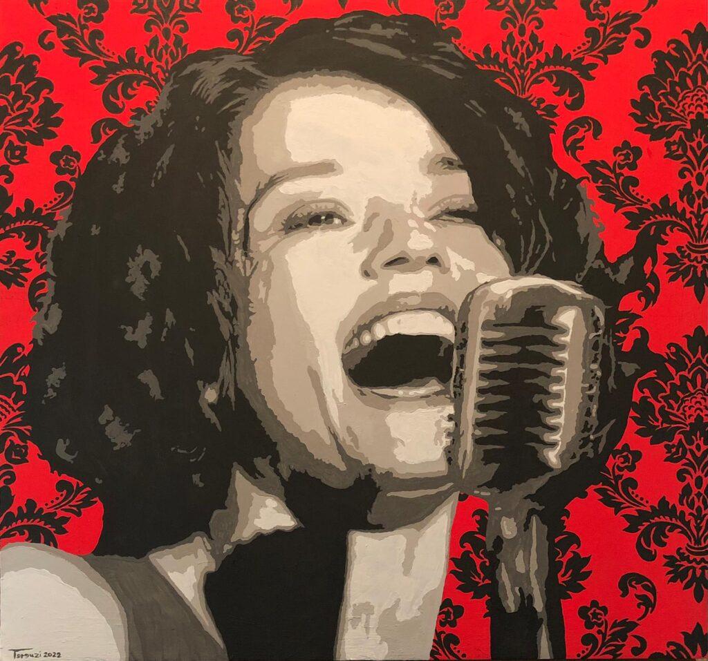 L’artista cassinate Emiliano Terenzi ha dipinto il volto della cantante con la tecnica dell’acrilico su cartone.