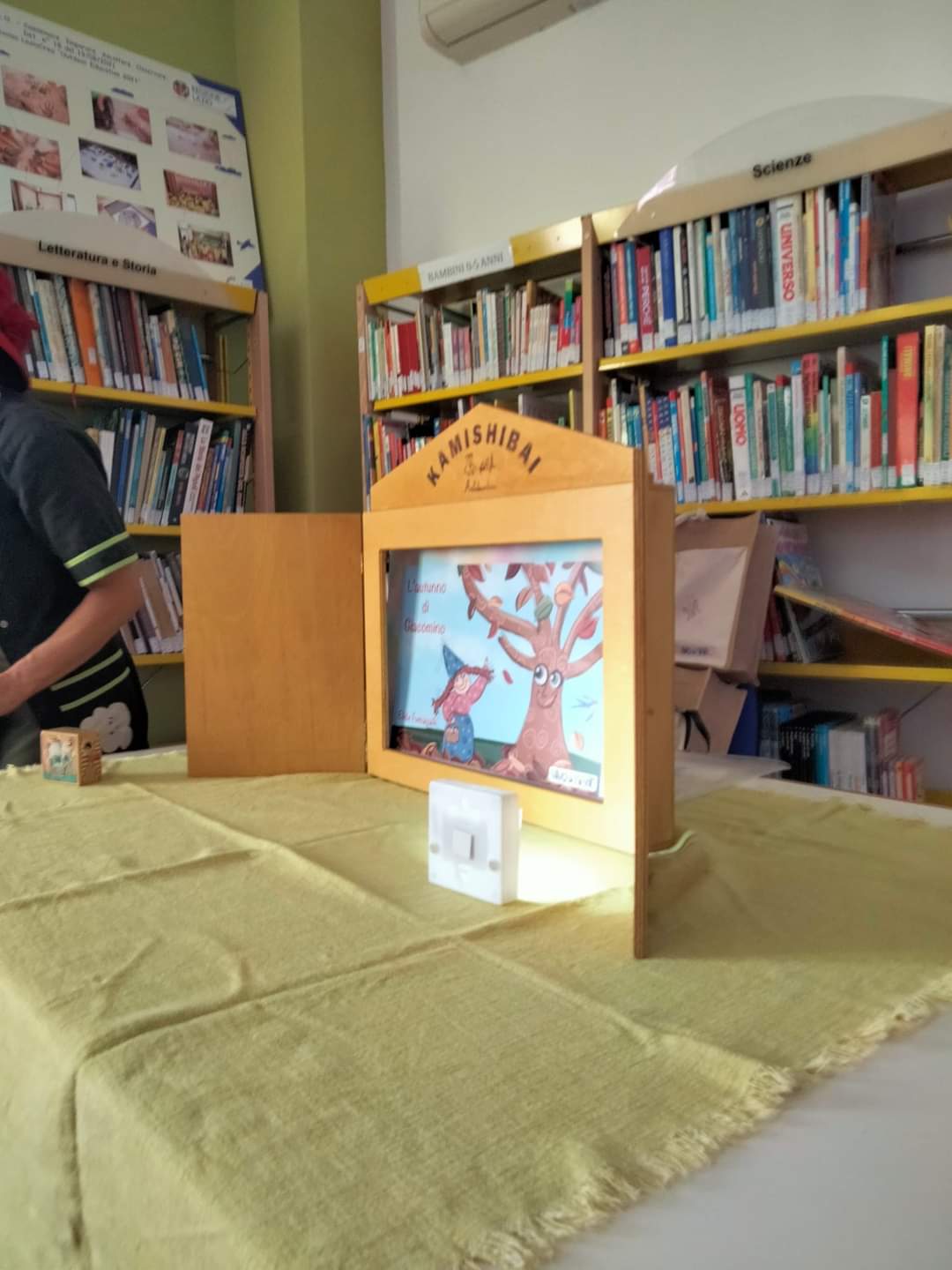 un cappello rosso, una grande borsa capiente e poi la voce della #maestraSimona con il #kamishibai “l’autunno di Giacomino”.
