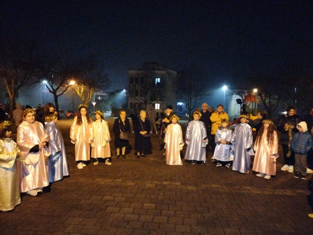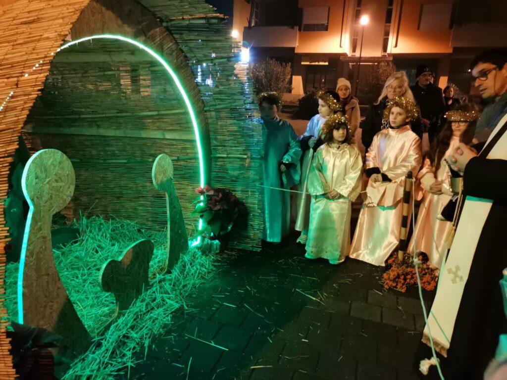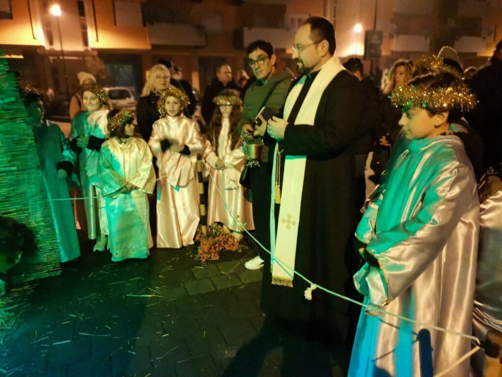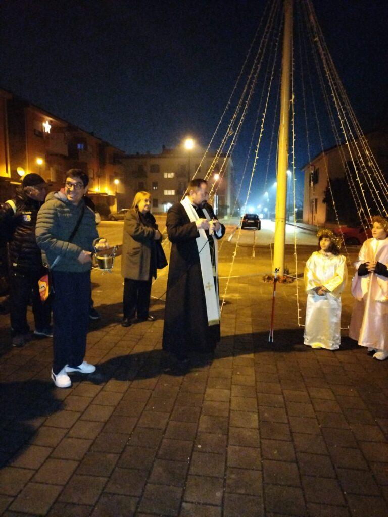 Si è tenuto oggi 8 dicembre Solennità dell’Immacolata Concezione l’accensione e l’inaugurazione del presepe statico e dell’albero di Natale presso la Piazza del Colosseo antistante l’ufficio postale. L’iniziativa, ad opera della parrocchia di San Pietro Apostolo in collaborazione con le varie associazioni e il comune di Cassino,è una delle tante iniziative che verranno messe in atto nel periodo natalizio in virtù di una chiesa in uscita, così come voluta da Papa Francesco, per creare un rapporto di comunità fraterna con l’intero quartiere. Tanti sono stati i partecipanti e tanta è stata l’emozione dei bambini vestiti da angioletto. Il parroco don Nello Crescenzi, dopo un momento di preghiera a Benedetto sia il presepe che l’albero con sottofondo le note musicali di uno zampognaro.