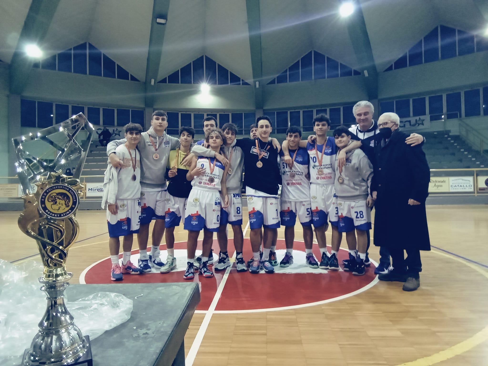 Nella finale per il terzo e quarto posto buona prestazione del Basket Cassino che si aggiudica la medaglia di bronzo battendo la Fabiani Formia per 67 a 59. A premiare gli atleti della prima finale il prof. Gennarino Bologna, nella sua veste di decano e storico dirigente delle formazioni di basket della Città di Atina.