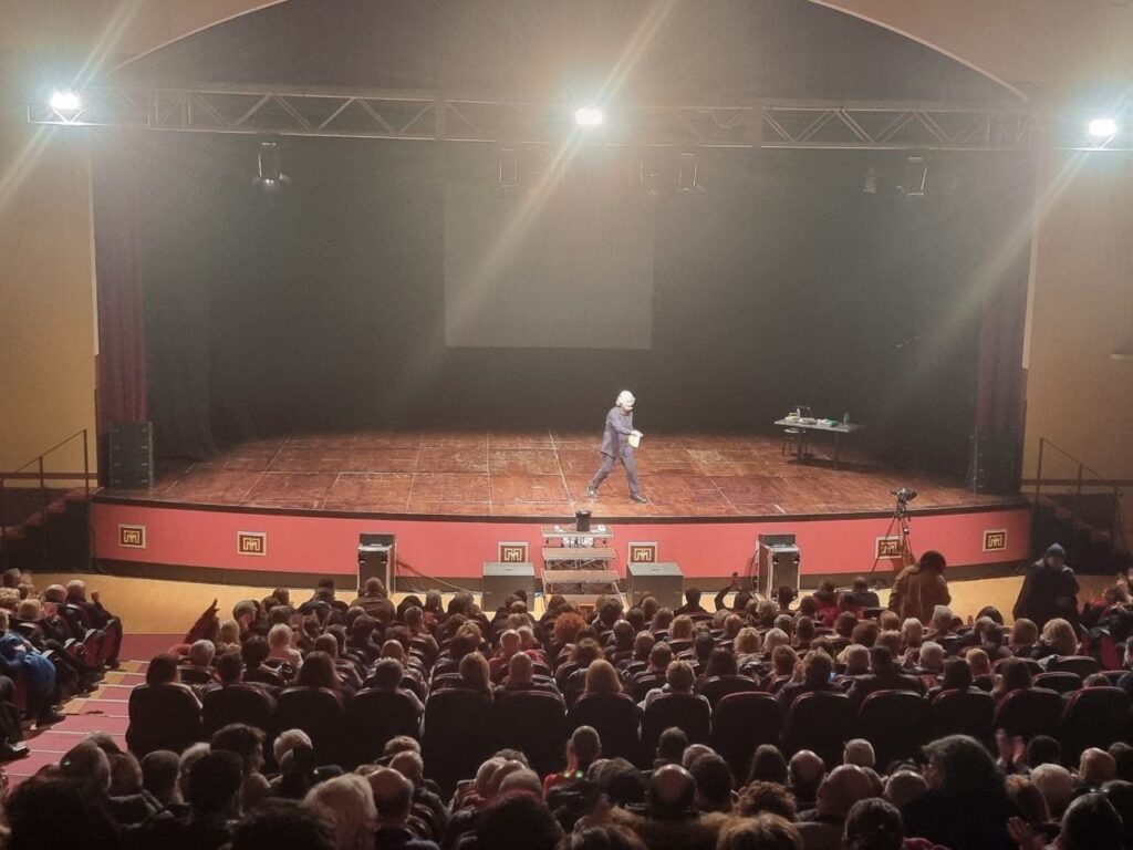 Oltre due ore di “One man show” dove il comico, toccando argomenti “delicati” senza sconti per nessuno, ha tenuto incollati alle poltrone gli spettatori giunti da più zone della provincia di Frosinone, ma anche dalle vicine province di Latina, Caserta e Isernia.