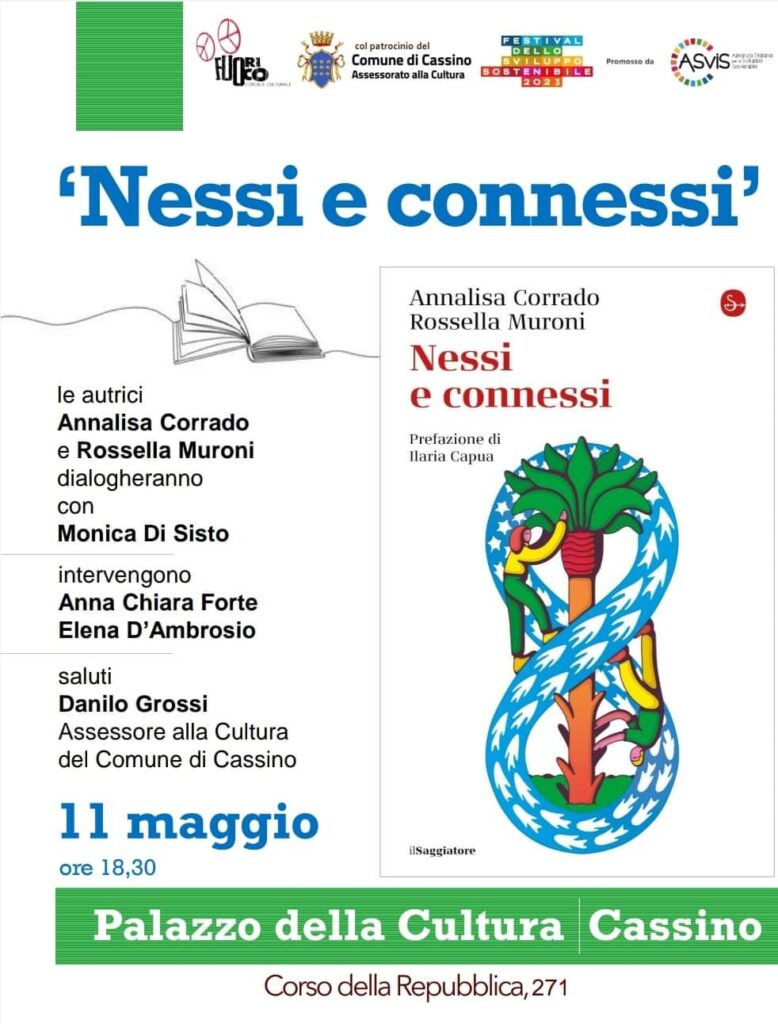 11 Maggio 2023CASSINO – Tanti gli appuntamenti nel weekend, ce n’è davvero per tutti i gusti. Si inizia questa sera, giovedì 11 alle ore 18.30 con un grande appuntamento letterario. Il Palazzo della Cultura, ospiterà la presentazione del libro NESSI E CONNESSI con la possibilità di incontrare le autrici Rossella Muroni e Ilaria Capua, ad accompagnarle in questo viaggio ci saranno anche Elena d’Ambrosio, Monica Di Sisto e Anna Chiara Forte, insieme a Danilo Grossi, assessore alla cultura del comune di Cassino. Si parlerà di sviluppo sostenibile e di amore per l’ambiente.