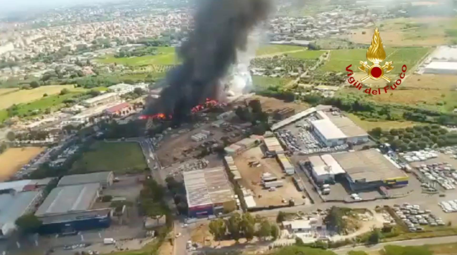 Le fiamme hanno provocato una densa colonna di fumo visibile anche dall’esterno.