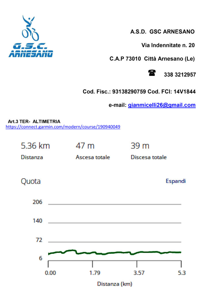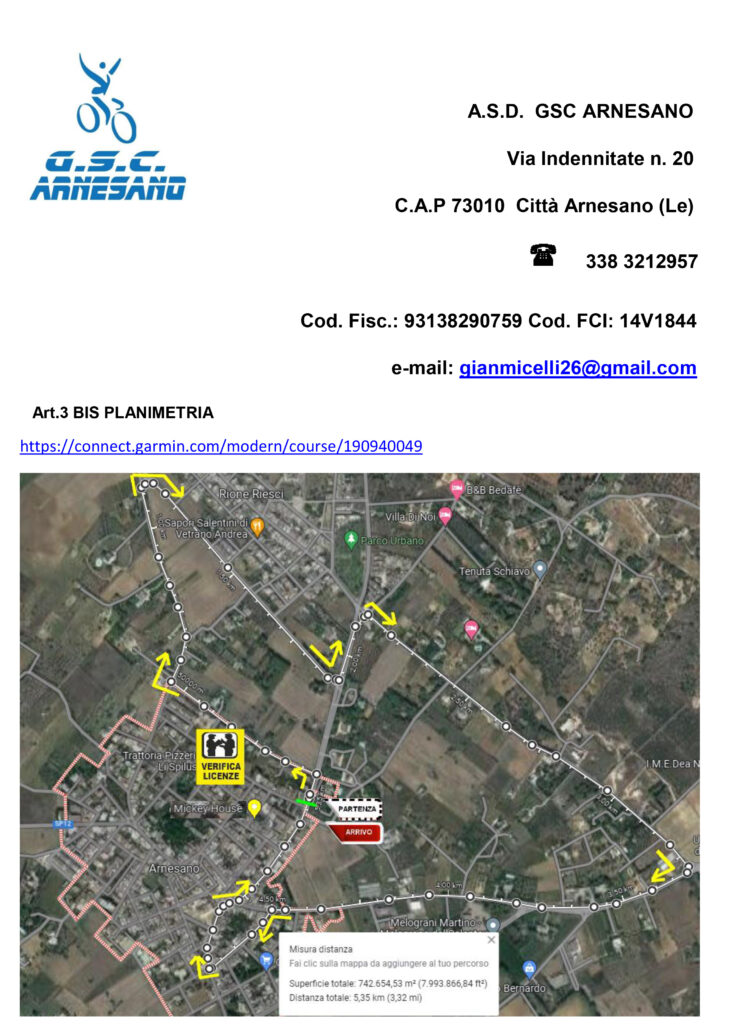 Ritrovo/Verifica licenze : 07.30-08.50 presso MICKEY HOUSE, Via della Libertà 3 in Arnesano (LE)