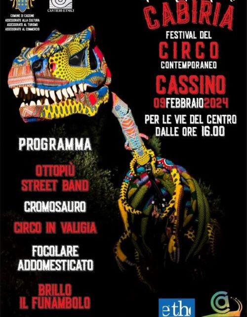4 Febbraio 2024Uno spettacolo nello spettacolo la performance del ‘Circo di strada’ nell’ambito del Carnevale cassinate è rappresentato da CABIRIA, il più grande spettacolo del prossimo weekend di Carnevale: musica, esibizioni circensi, mascherine, nasi rossi invaderanno il centro di Cassino, VENERDI 8 FEBBRAIO dalle ore 16.