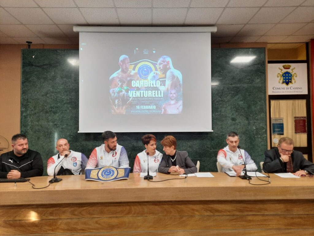 Attorno al campione cassinate, ieri pomeriggio durante la conferenza stampa nella sala ‘Restagno’ del comune di Cassino , la moglie Emanuela, le sue tre bambine, il papà, la mamma, il suo allenatore Marco Guglielmi, il secondo Oscar Di Lucci, il procuratore e altri dello staff. Presente il consigliere comunale Fabio Vizzacchero e l’assessore comunale allo sport, Maria Concetta Tamburrini, che molto si è adoperato per dare un supporto concreto all’evento. massimi.