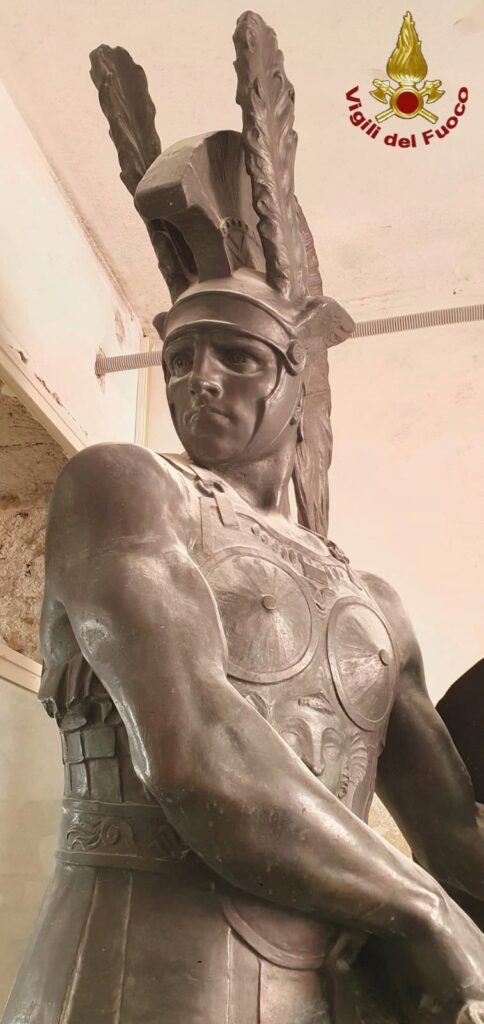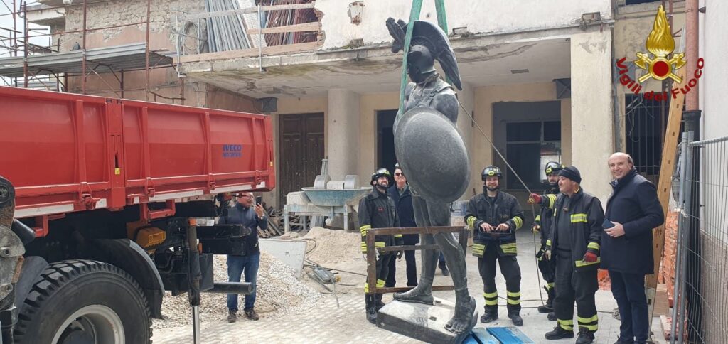Recuperata dai locali della ex scuola la statua del guerriero sannita di Pietrabbondante