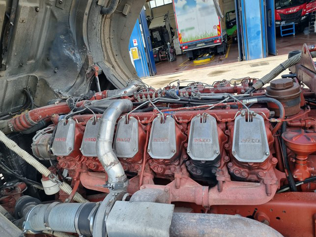 Dopo averlo fermato, gli agenti hanno notato lo scarico con doppia marmitta e alcune componentistiche meccaniche difformi. Pertanto hanno deciso di controllarne il motore sollevando la cabina di guida, ma mai i poliziotti immaginavano di trovarsi davanti un motore di dimensioni ragguardevoli con ben 12 cilindri a V e 4 turbocompressori.