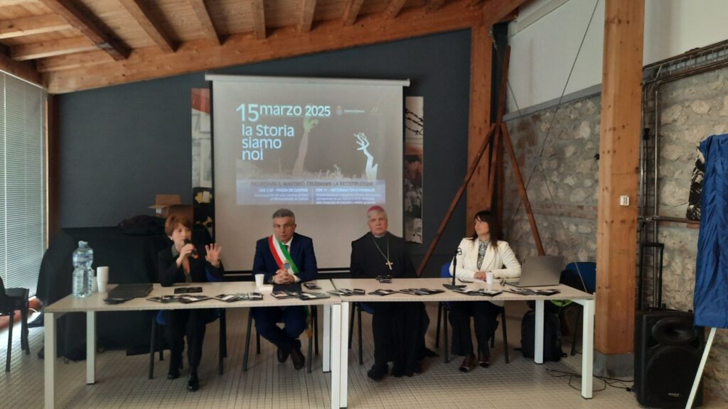 15 Marzo 2025Così come da programma, l’Amministrazione comunale, con il sindaco in testa, assessori e consiglieri (tra gli esponenti della minoranza, con evidente sensibilità, ha assicurato la presenza il consigliere Carmine Di Mambro) questa mattina ha ricordato l’81° anniversario della sua distruzione, il 15 marzo del 1944, con una sobria cerimonia in piazza De Gasperi. Nel monumento ai Caduti è stata deposta una corona di alloro e osservato un minuto di raccoglimento, cui ha fatto seguito una commovente preghiera, sempre in omaggio delle vittime di allora, da parte del padre Abate di Montecassino, dom Luca Fallica.