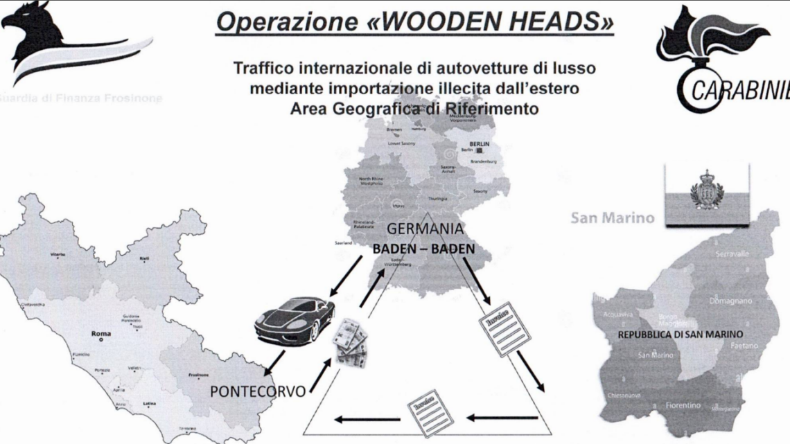 Base logistica della presunta compagine criminale è stata individuata in una nota e lussuosa attività commerciale e di ristorazione di Pontecorvo. Nell’ambito del procedimento, vista la complessità dell’indagine, per la Polizia giudiziaria italiana si è reso necessario avere continui interscambi investigativi con i collaterali organi investigativi della Repubblica federale della Germania e della Repubblica di San Marino, avendo accertato la provenienza delle autovetture di lusso commercializzate sul territorio nazionale, per importi nell’ordine di milioni di euro e con una importante evasione dell’Iva accertata. Nel solo anno di riferimento 2021 risultavano commercializzate autovetture provenienti dall’estero per complessivi 1.150.400 euro con una evasione dell’Iva calcolata in 253.088 euro.