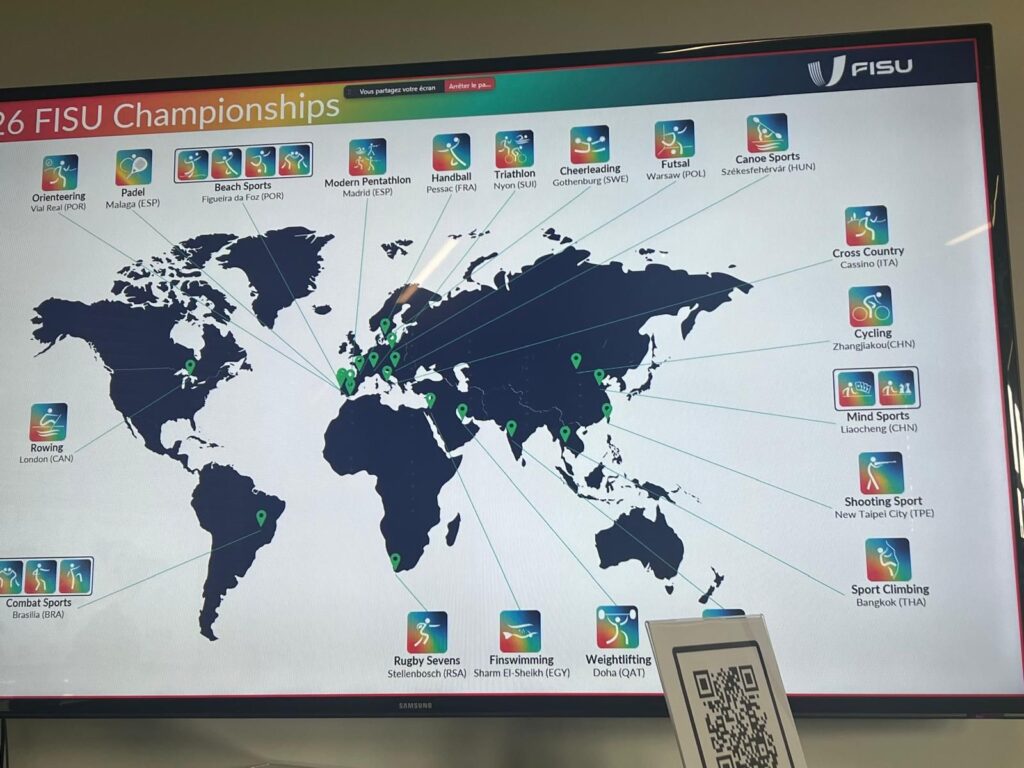 Il 14 e 15 marzo 2026 Cassino ospiterà i WORLD UNIVERSITY CHAMPIONSHIP. La FISU (Federazione Internazionale dello Sport Universitario) ha scelto questa data per l’importante evento che vedrà ancora una volta Cassino come protagonista indiscussa della Corsa Campestre. La data è stata comunicata nel corso di un seminario che si è tenuto a Losanna. La stagione dei Campionati mondiali universitari FISU 2026 è già in pieno svolgimento, con 20 comitati organizzatori in 17 paesi già impegnati a creare loghi, definire programmi e, in generale, a costruire passo dopo passo l’evento. 17 di loro, provenienti da 15 paesi, si sono recati alla sede centrale della FISU per il tradizionale seminario di tre giorni. Tra di loro c’era anche una delegazione del CUS Cassino capeggiata dal Presidente Carmine Calce e dal Vicepresidente Vicario Laurent Ottoz. Obbiettivo del seminario, condividere il massimo delle informazioni tra la FISU e i comitati organizzatori, ma anche tra le diverse nazioni. I 17 comitati che hanno partecipato ospiteranno i seguenti sport: Beach Sports (Portogallo); Cheerleading (Svizzera); Combat Sports (Brasile); Cross Country (Italia); Finswimming (Egitto); Futsal (Polonia); Handball (Francia); Mind Sports (Cina); Modern Pentathlon (Spagna); Orienteering (Portogallo); Padel (Spagna); Rowing (Canada); Rugby Sevens (Sud Africa); Shooting Sport (Chinese Taipei); Sport Climbing (Thailand); Triathlon (Svizzera); Weightlifting (Qatar). A rappresentare l’Italia con il Cross Country, proprio Cassino.